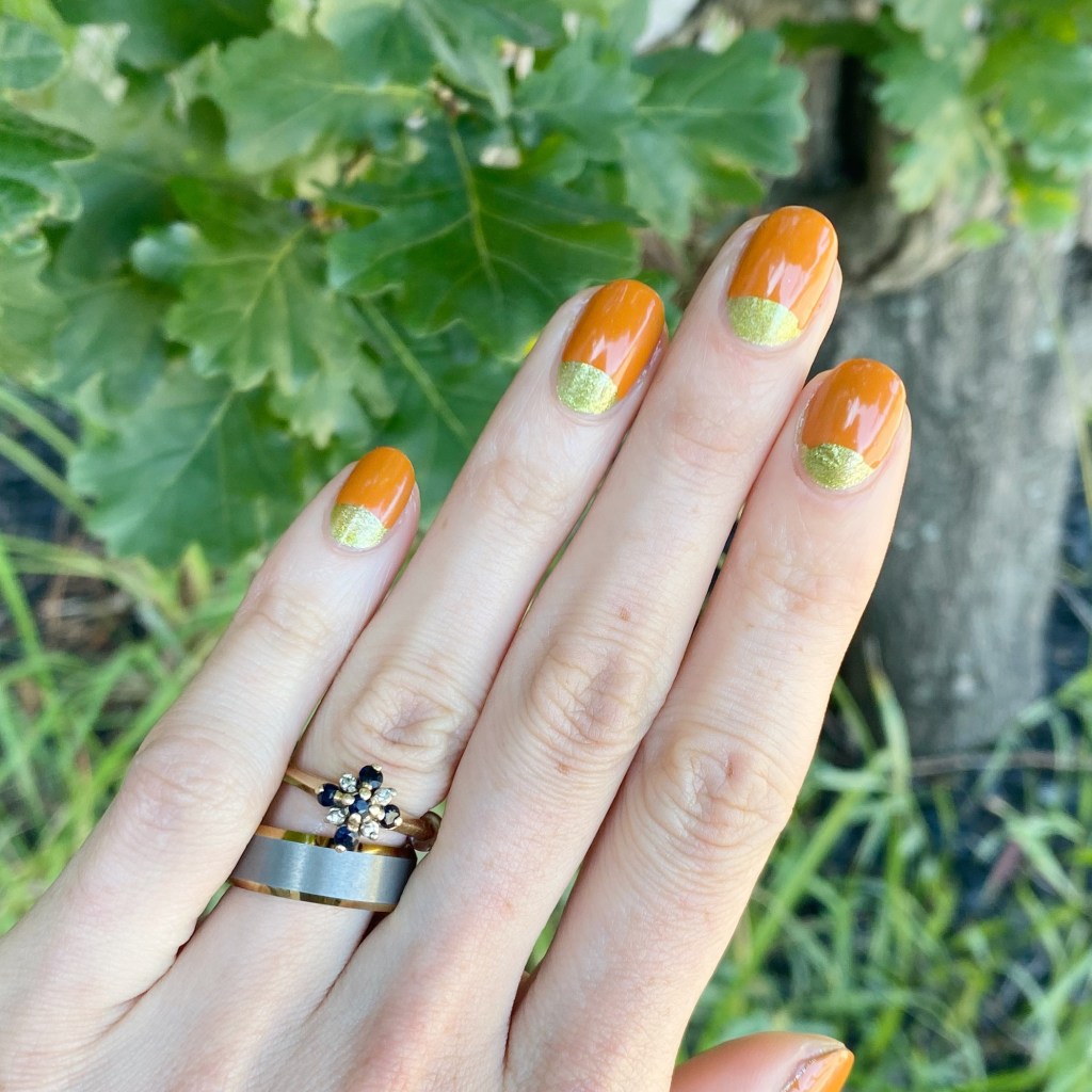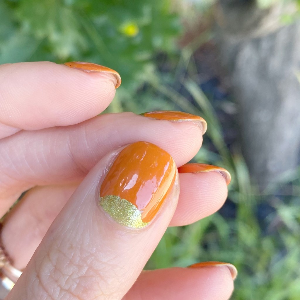 So, seeing as I’m feeling Fall vibes, I decided to try & create a Fall-esque design using a few more of the Sally Hansen x Sesame Street InstaDri shades I recently received. I thought these colours would absolutely scream Fall together… but truthfully, I’m getting more Michelangelo from the Ninja Turtle vibes instead.