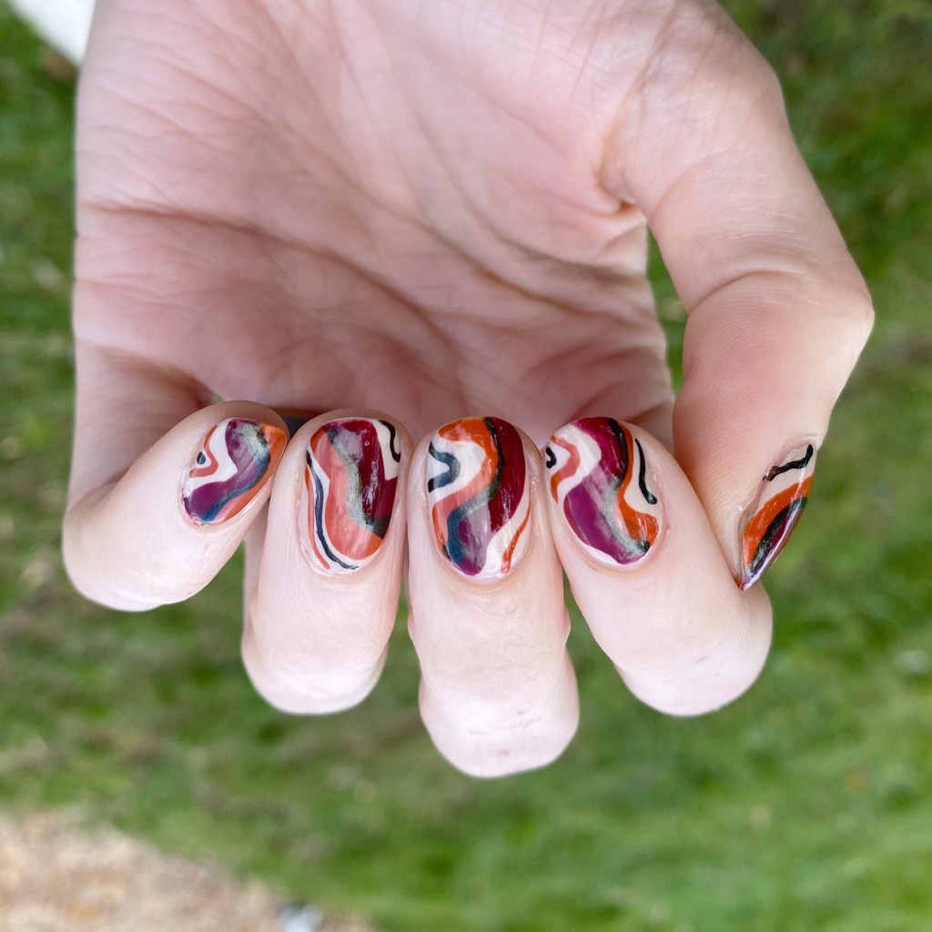 Look at these colours together — if this doesn’t scream Autumn vibes, I don’t know what does! The colours blend beautifully together. & this is what I always mean when I say this abstract stripe design is my favourite because of the endless colour possibilities; there are infinite combinations. & it’s so easy. This design probably took me maybe 30 minutes from start to finish, not including dry time.
