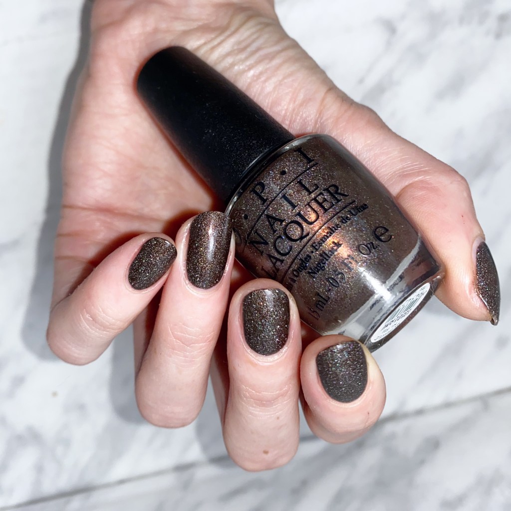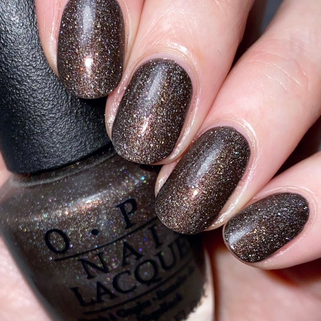 I’m not exactly sure when I picked up my bottle of My Private Jet, but it’s definitely the new scattered holo of the polish. The base is a beautiful dark brown, & it’s packed full of those tiny scattered holographic glitters. It also has a fun copper shimmer that comes through in certain lighting for a nice glow.