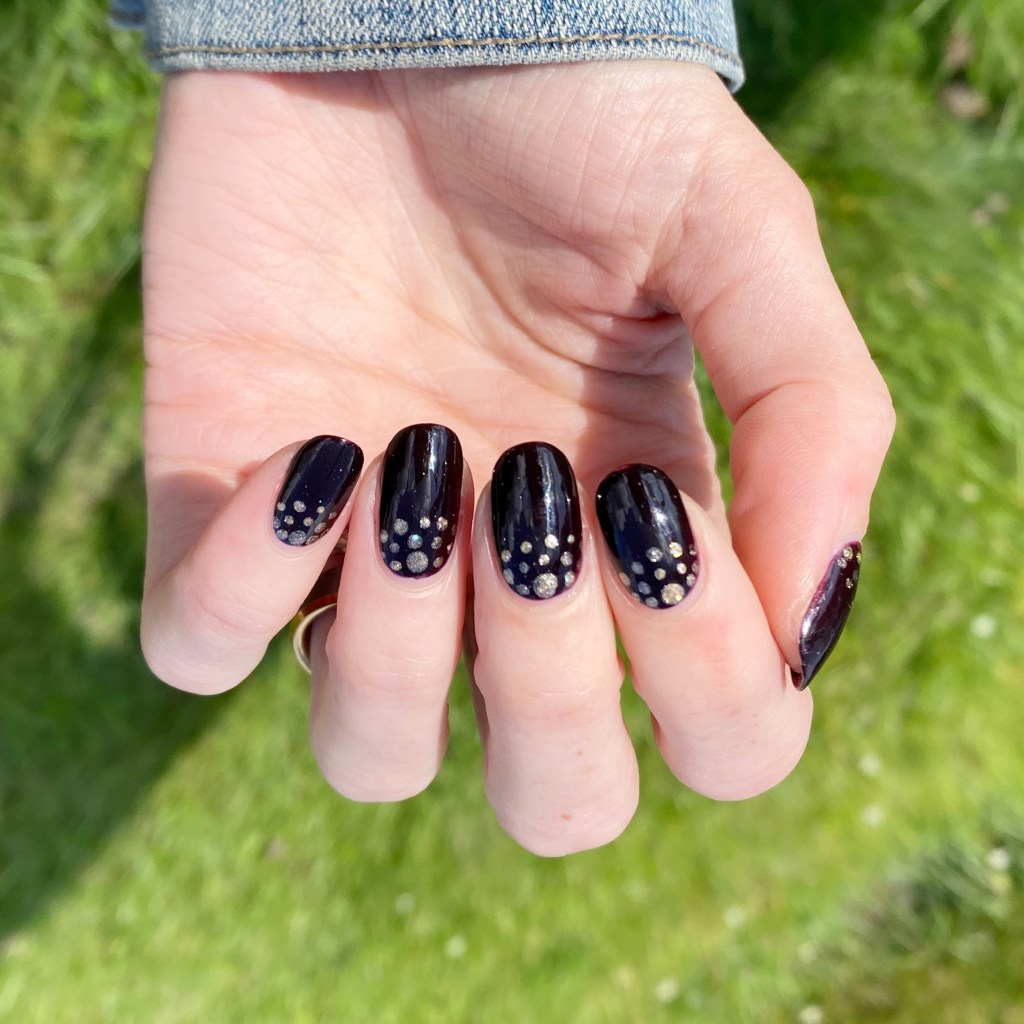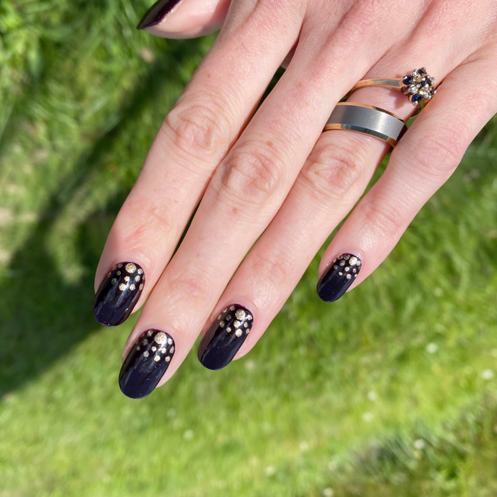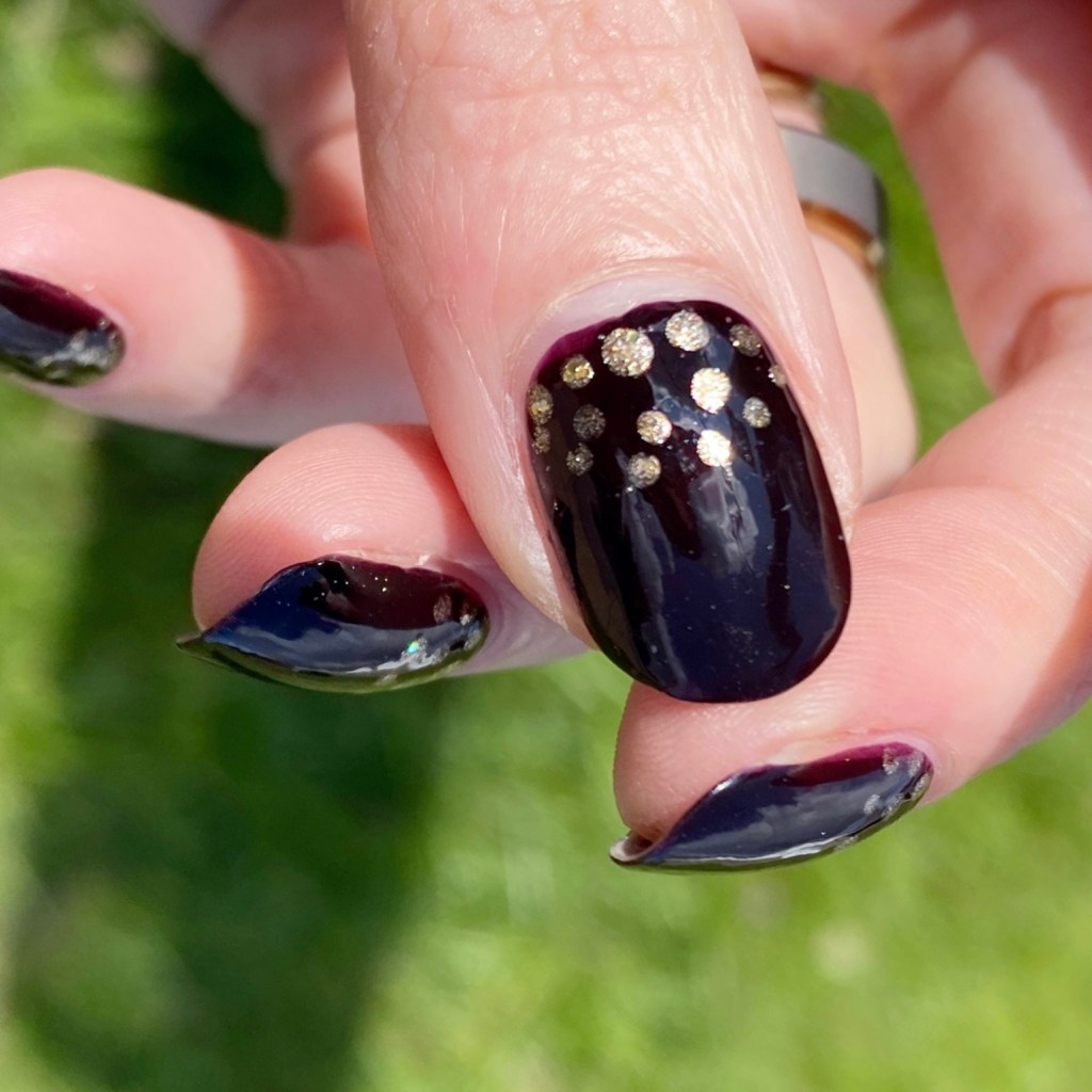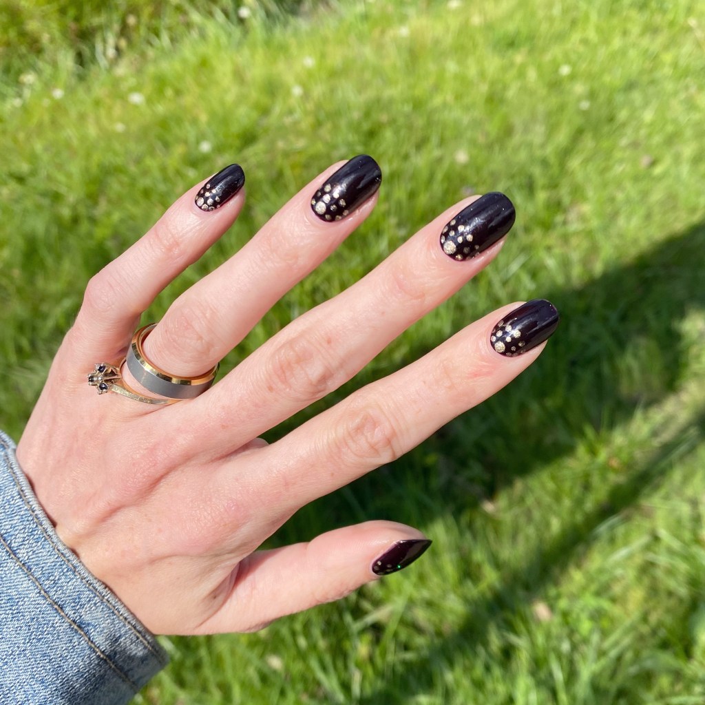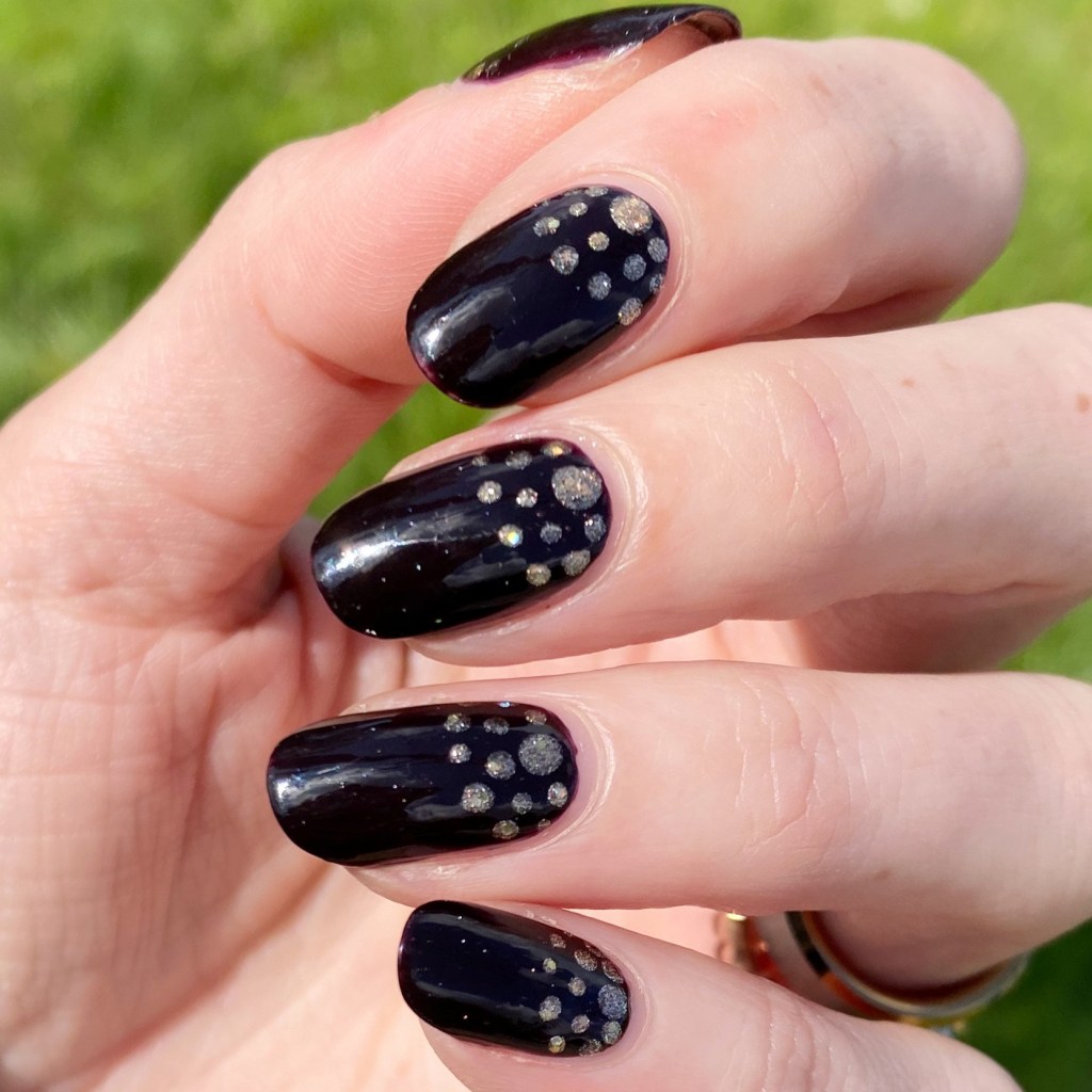 For this look, I wanted to create a kind of moon effect, but using polka dots instead of my usual way of doing them, & I think I was semi-successful. Some of my nails turned out a bit wonky, but over-all I think the intended effect came to fruition. Plus gold just pairs so well with the darkness of Lincoln Park After Dark. I think it’s a fun effect, & a little bit different than my usual gradient dotticures. Next time, though, I might try for smaller dots.
