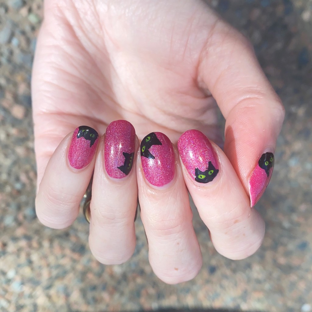 What do you think of my black cat design? Already 4 prompts in β thatβs super exciting. This month is going to be very, very fun for nail art, I can feel it already.