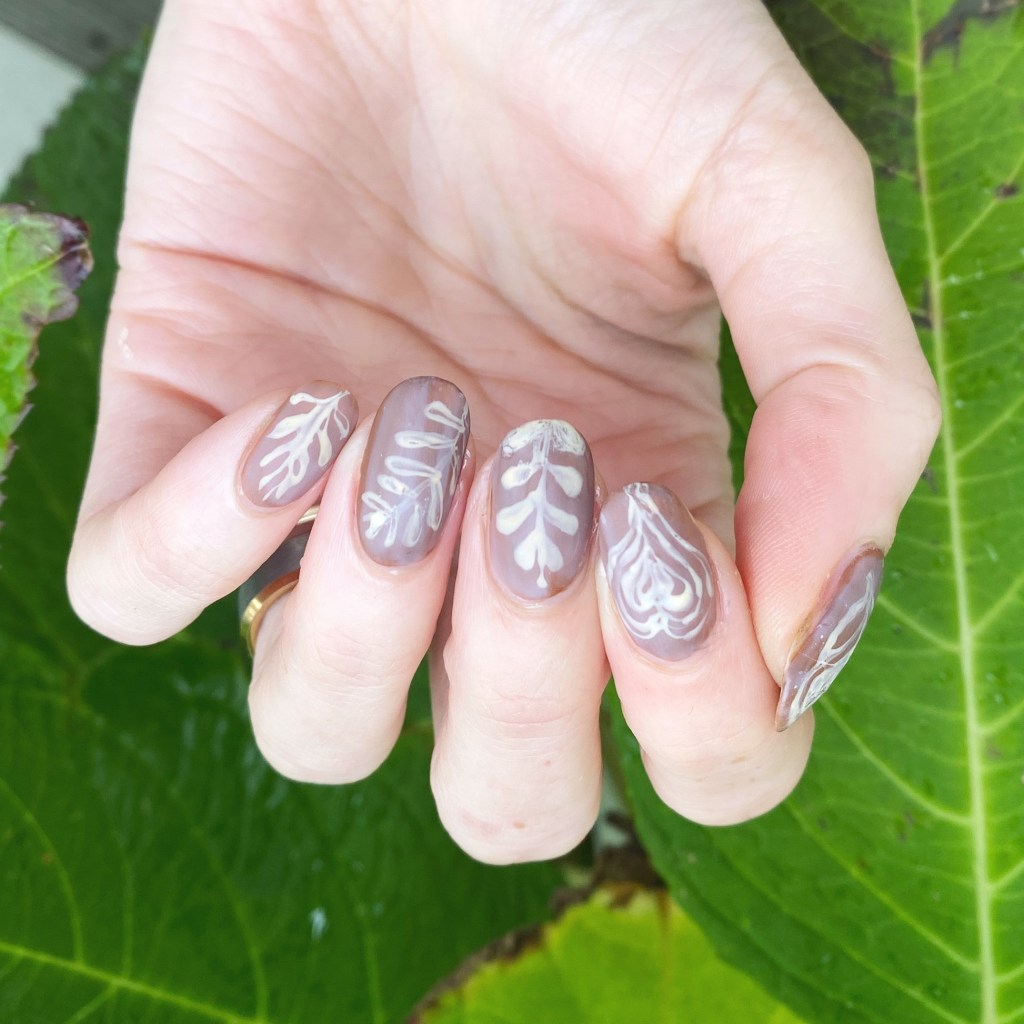 I was going for a latte art design, so I used acrylic paint because I knew that I was going to need to be able to erase any mistakes — & I was right! This look took longer than expected to do, but I think it turned out just like the coffee art I used to do when I was a barista.