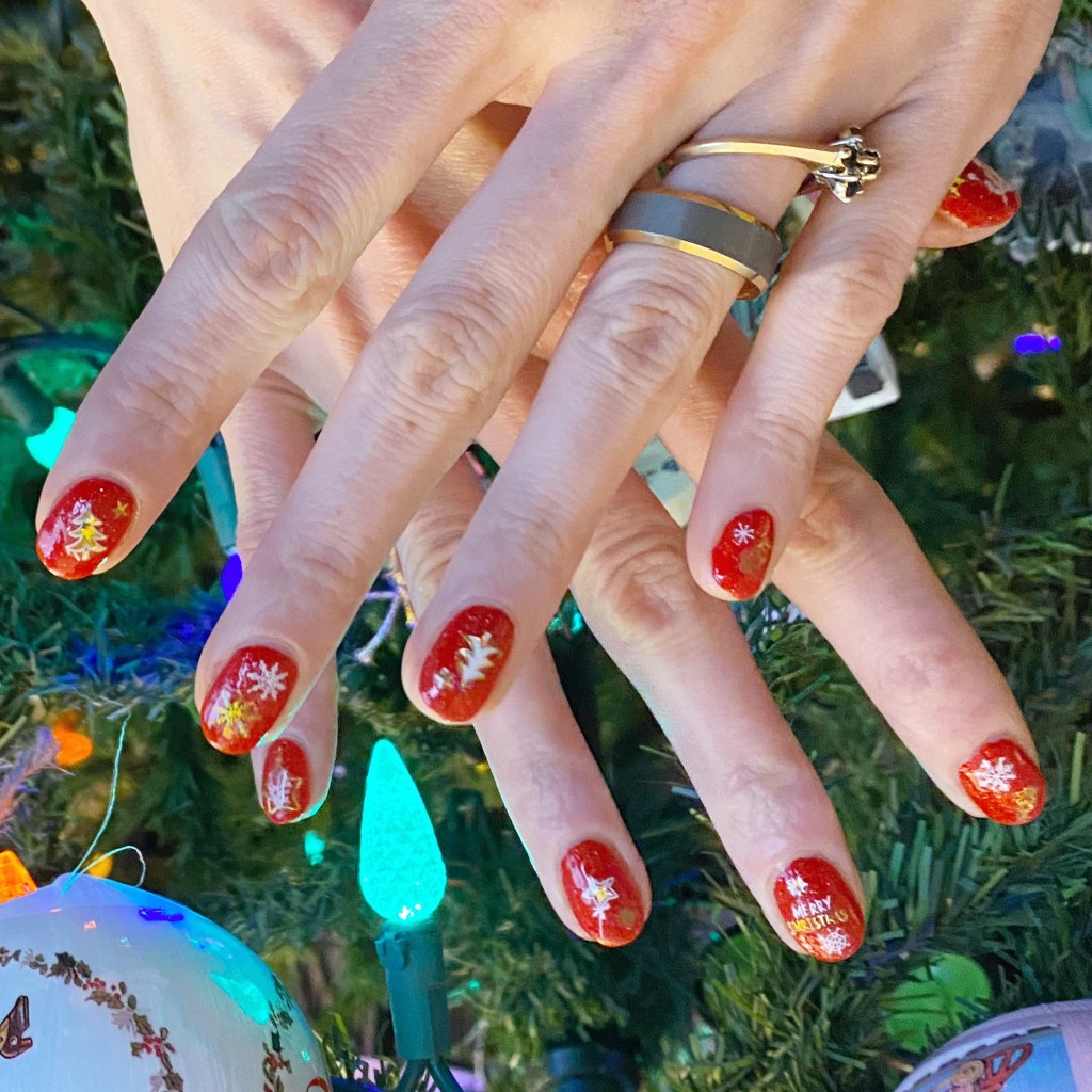 But HOW CUTE are these stickers?! I thought this gold & white set would be perfect over my red base, & I was right! These are perfect for last minute party nails, or any occasion for a little extra pizazz (without a lot of extra time!)