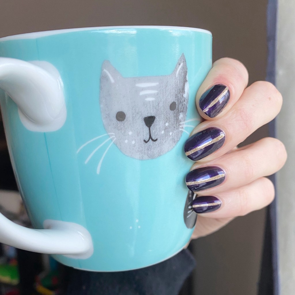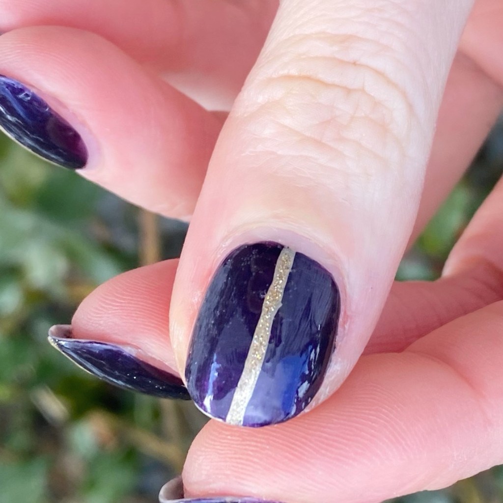 You can’t really see the holo sparkle of Five Golden Blings but it’s there! I really like this simple single line. I was also really excited with how straight my lines turned out! That isn’t always the case. Even though I’ve come a long way with my straight nails, that doesn’t mean they’re always perfect! So when I do get them right… oh boy, does it make me excited!