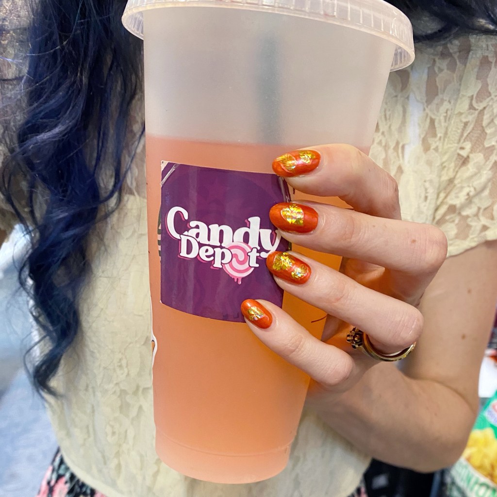 The gold looks so nice against the burnt red of Essie U Wish. I quite enjoy this combo. I tried to get a picture of these in the sunshine, but the holographic effect almost did a disservice to the manicure. But they’re very fun! In fact, it’s reminding me I’m going to need to order some Autumn/Halloween nail stickers from NailStuff.ca very, very soon!
