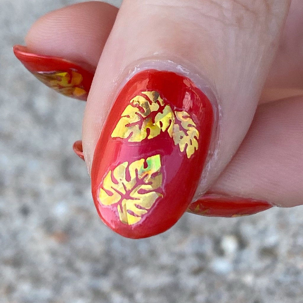 The first prompt of the month is plants. & I thought it was the perfect reason to break out these Born Pretty Store holographic stickers I had in my collection! These pretty tropical leaves stickers were the perfect look for my first prompt of Glam Nails Challenge August.