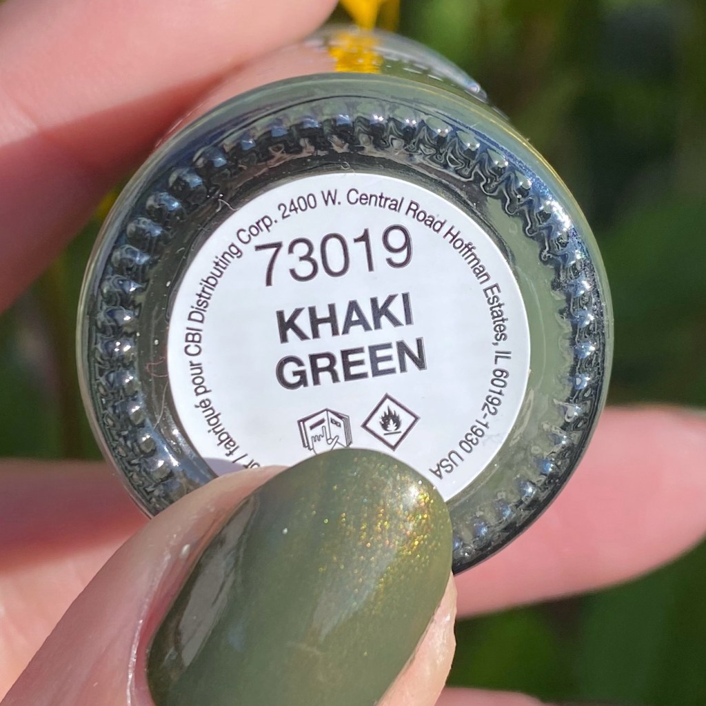 Khaki Green is a beautiful olive geeen with a stunning shimmer of golden bronze that really pops on the nail, especially in the sunshine. It is definitely giving late Summer/early Autumn, & would be the perfect addition to any Fall nail polish collection. & I love how the shimmer actually shows up better on the nail than in the bottle, which I feel like is virtually unheard of (it’s usually the other way around.)