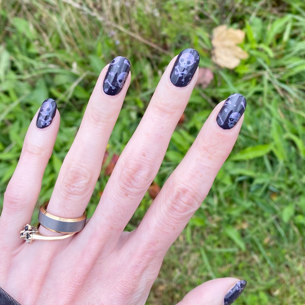 The weekend is almost here & it’s Thanksgiving weekend here in Canada so I expect to be in a full food coma by Sunday night. I thought it would be fun, though, so start my Spooky Season nails with a fun little skull & cross bones design.