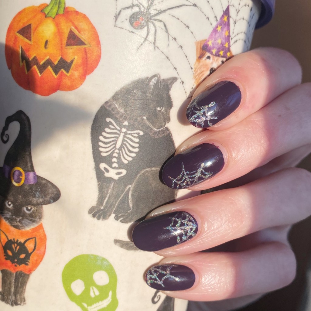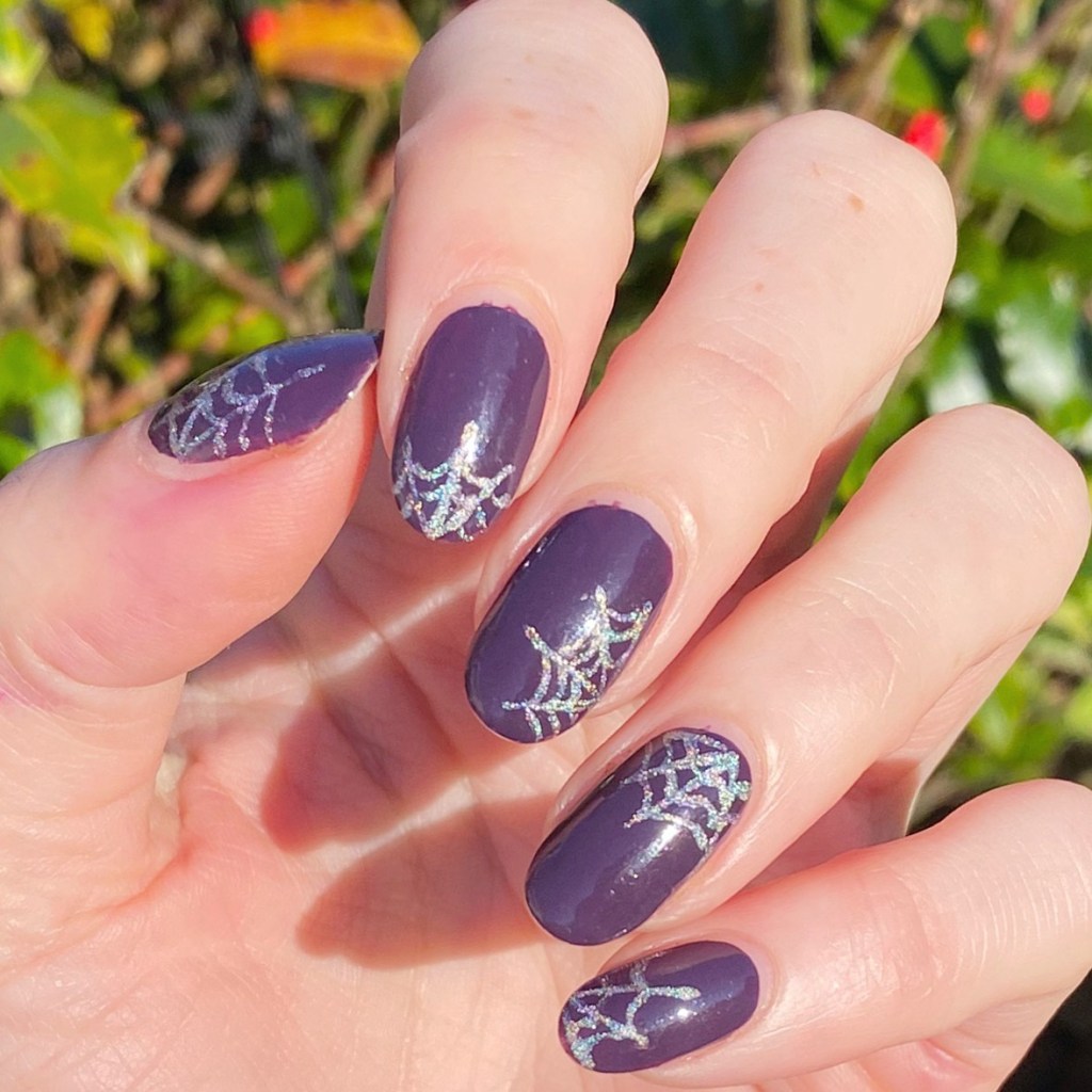 Cute! I’m with you on the limited allowance for spider webs. 😉 (Thank you for reminding me what a perfect purple Kimono Over is… for some reason I had forgotten it looks so different on the nail vs. the bottle!)