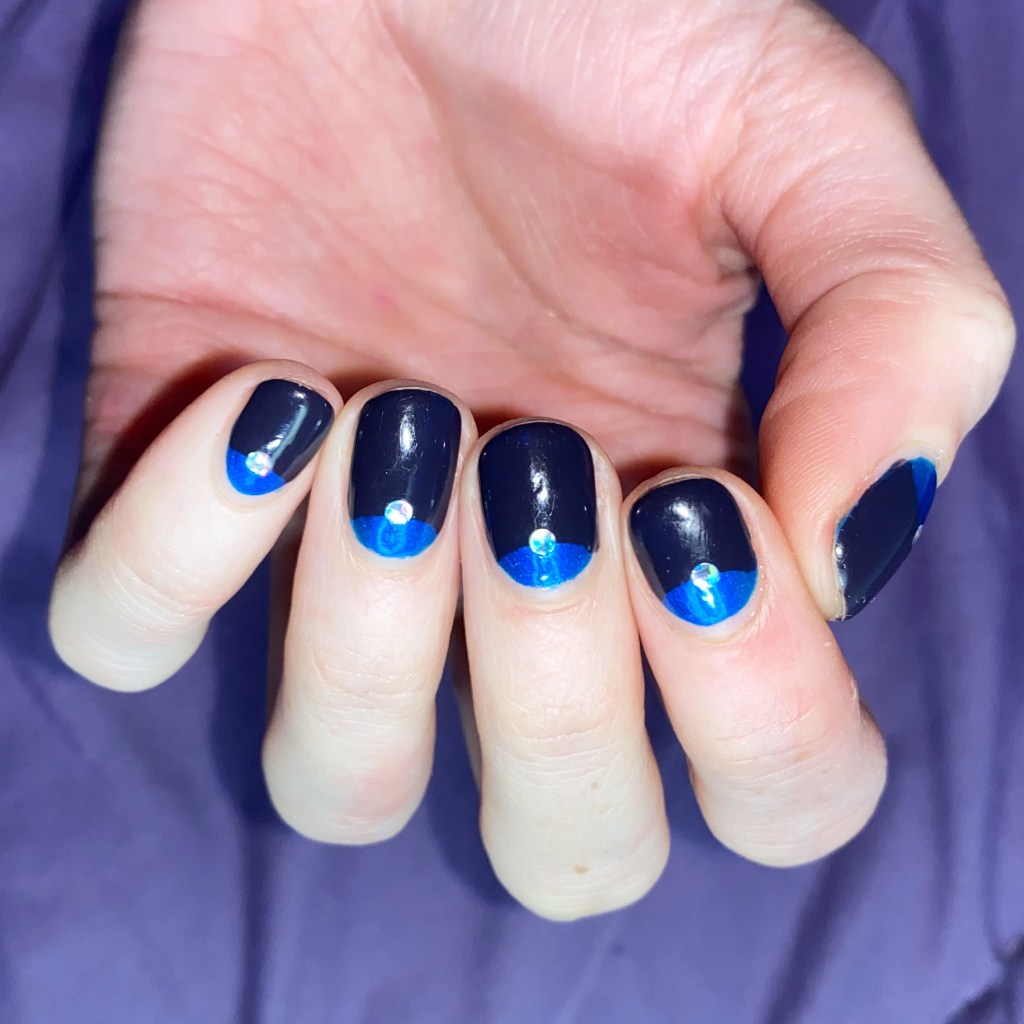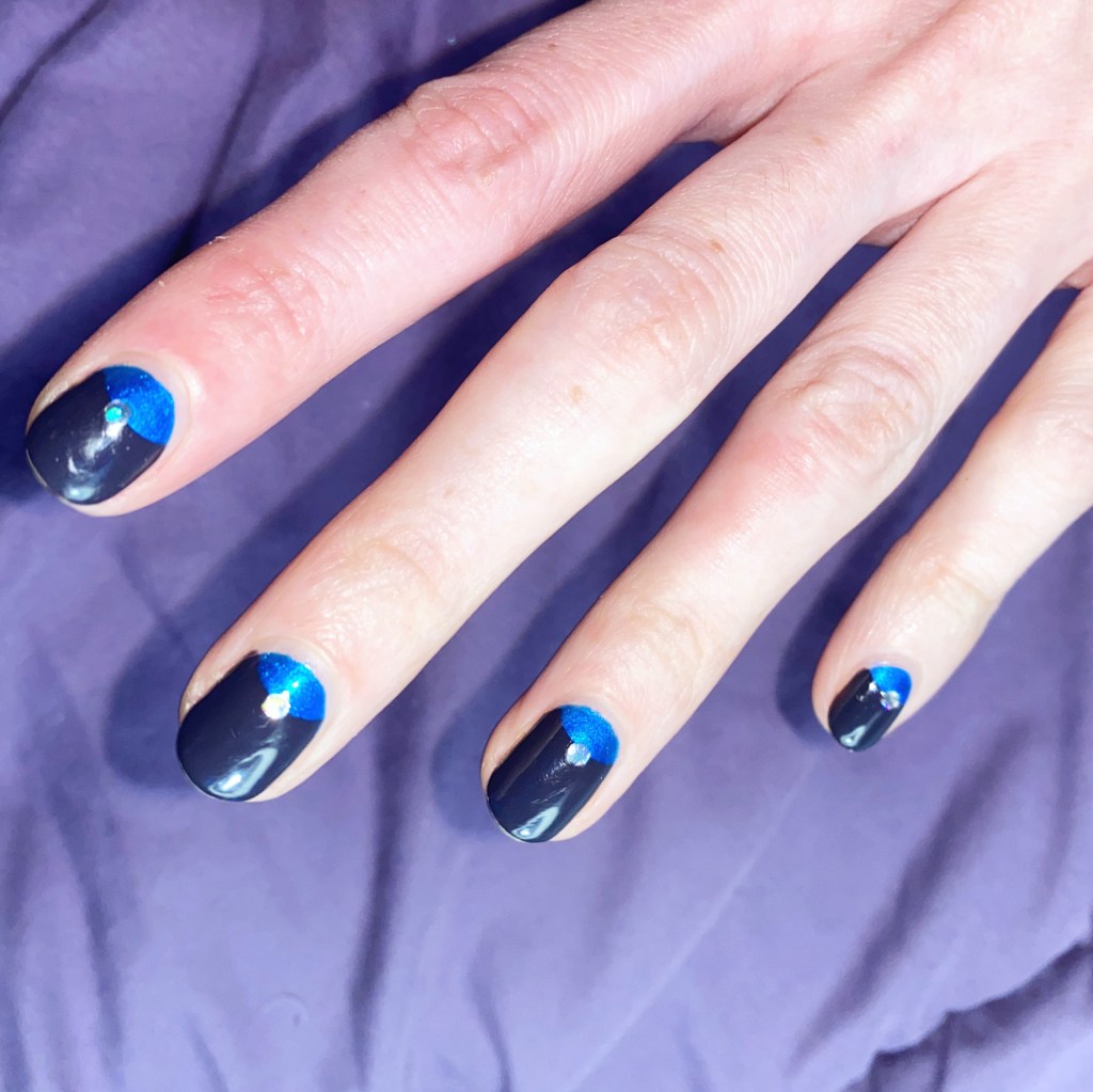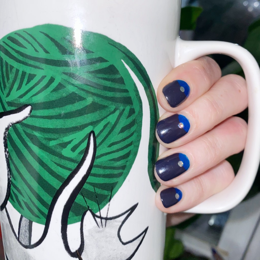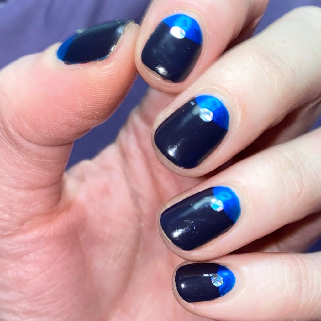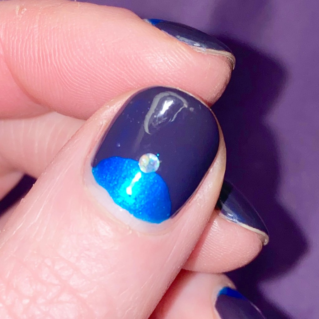 Today’s look is an easy but striking one. I love a good half moon, as we all know, but I decided to jazz it up with a little holo diamond(ish) accents.