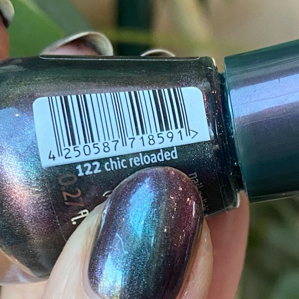Chic Reloaded is a beautiful dark grey metallic duochrome, that flashes purple or blue depending on the light. Similar to Essie For the Twill of It, or OPI Peace Love OPI, it has that beautiful oil slick effect to it. However, unlike the previous two mentioned shades, I feel like Chic Reloaded has a much stronger duochrome effect! Which, for a drugstore shade that cost me maybe $2.99 CAD at the time — circa 2012 — that is pretty darn amazing!