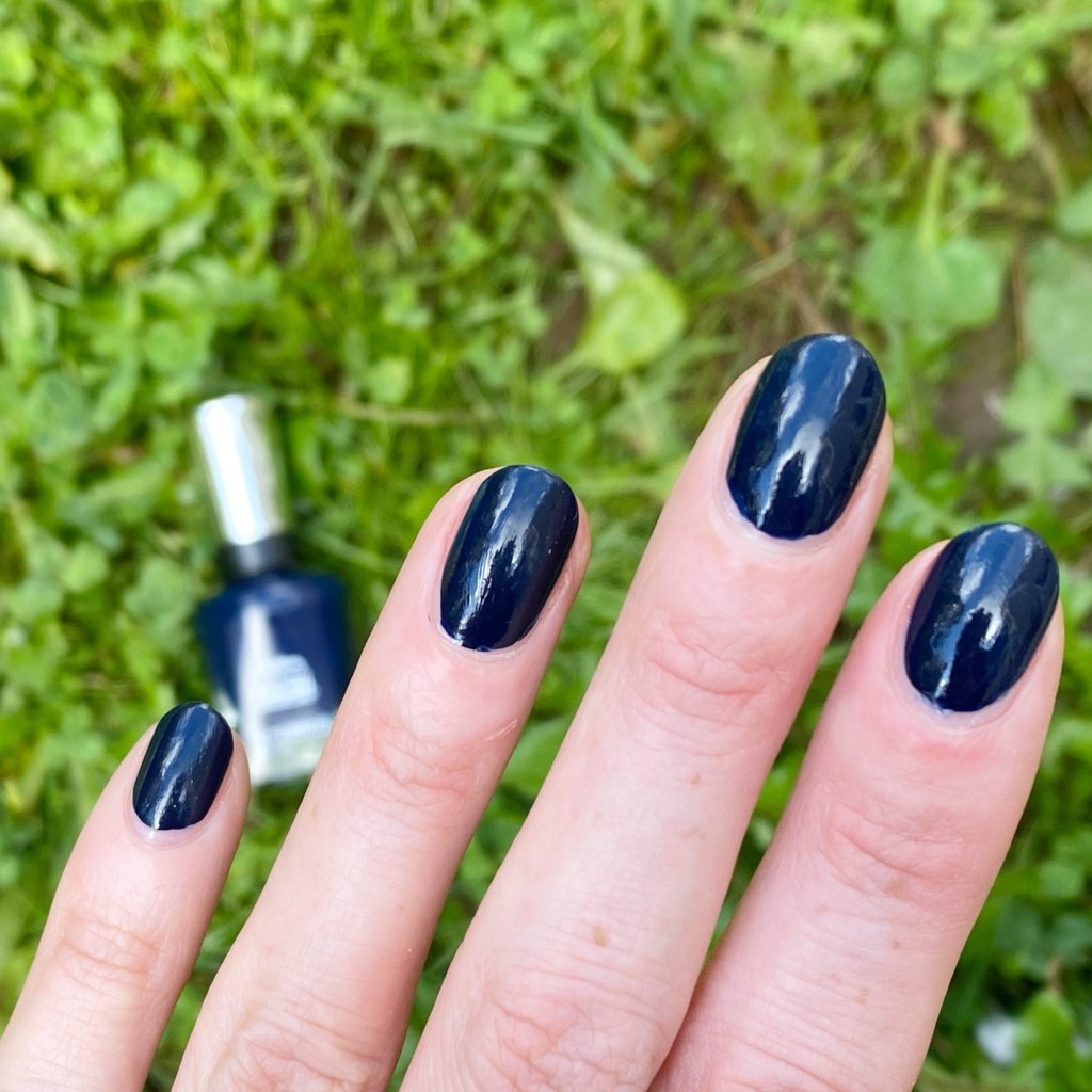 Look at that darkness. It’s so good! It reminds me of another favourite dark navy blue — Essie After School Boy Blazer.