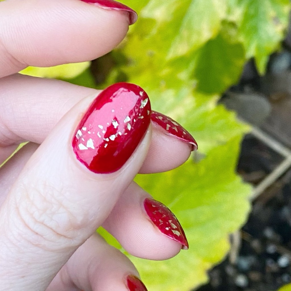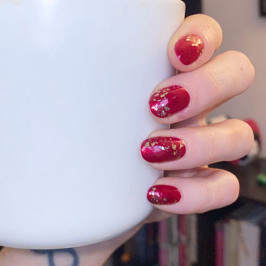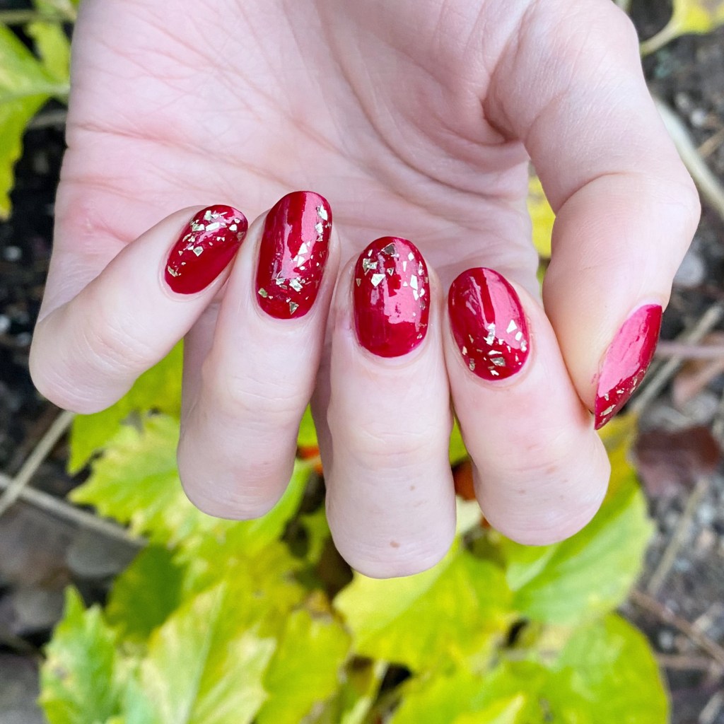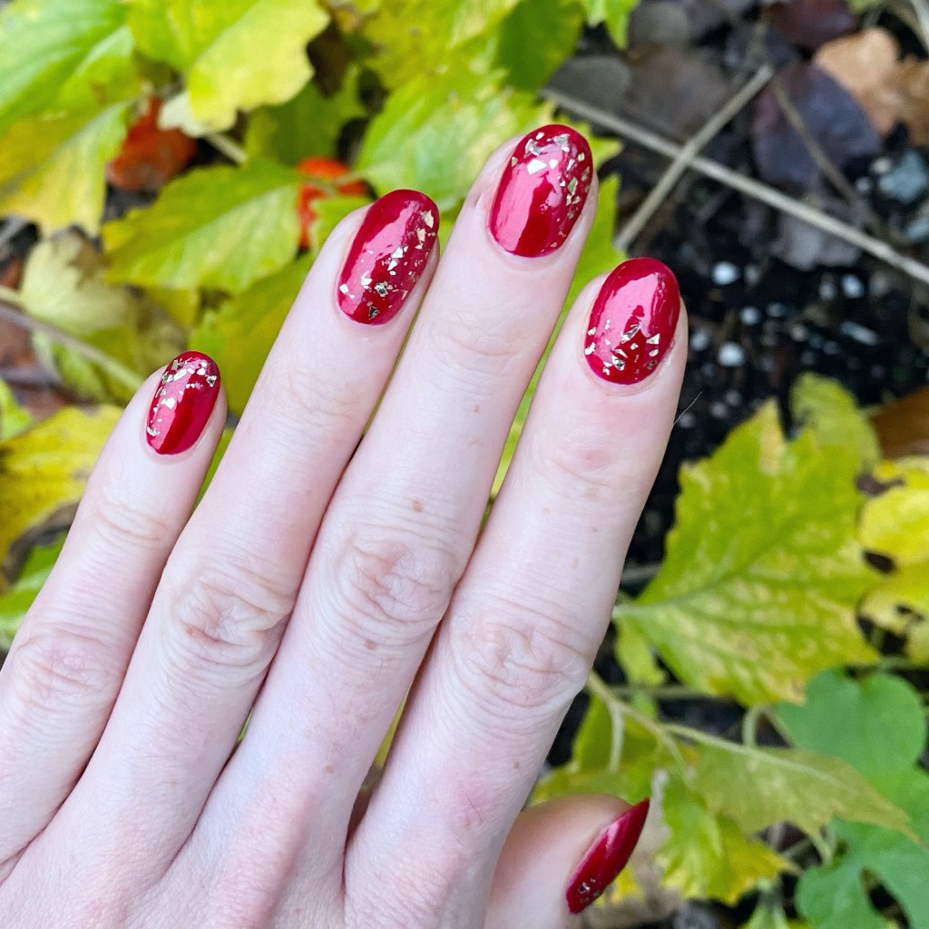What do you think about these red shattered glitter nails? Do you love? Also — as always, if you can think of any glitters similar to these in different colours, let me know. I used to have a holographic silver one by Color Club that dried up that I’m desperate to replace!