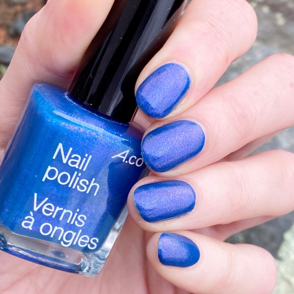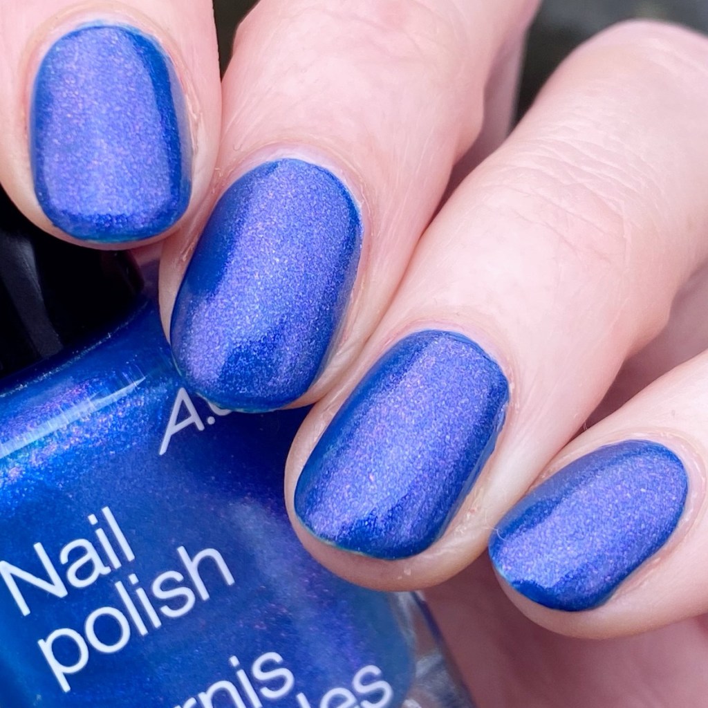 So yes, I did use some under-polish for swatching this beauty because it. is. thin. But I think it applies beautifully & you really get that shift of colour from blue to a purple hue. There is a nice micro glitter shimmer as well, which I remember loving a lot in the mid-2000s!