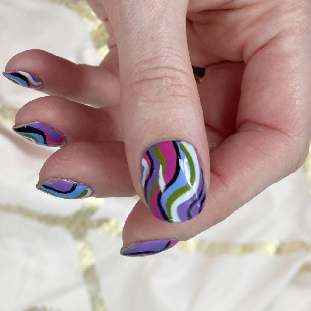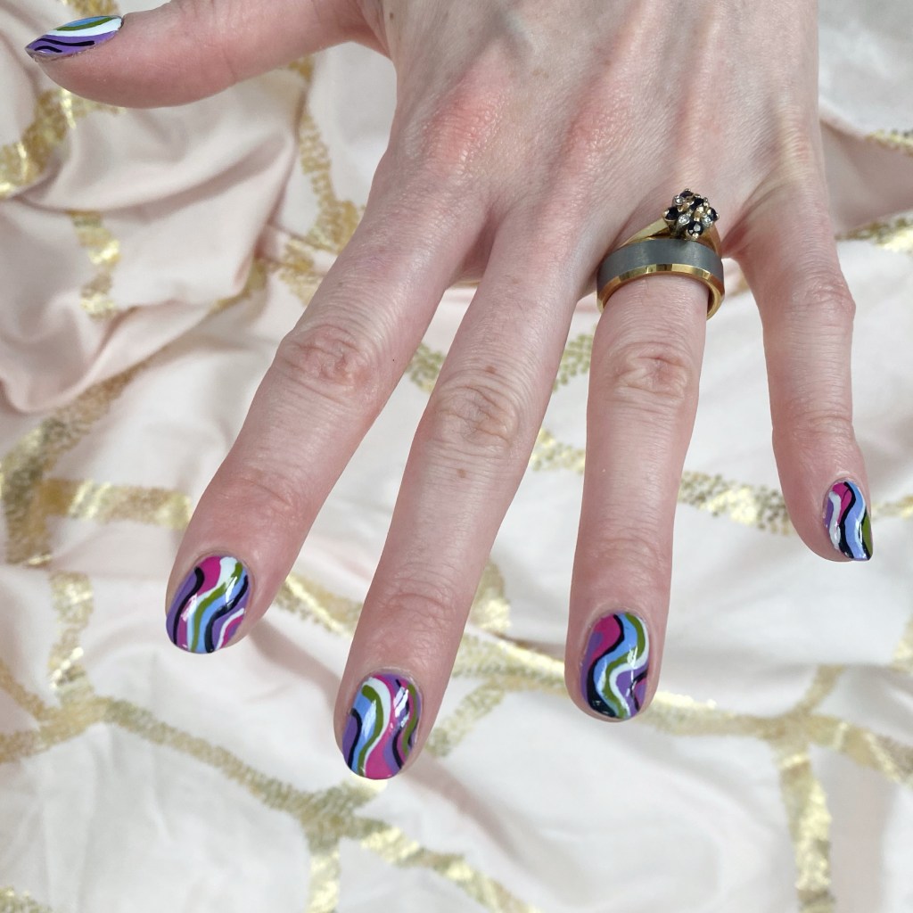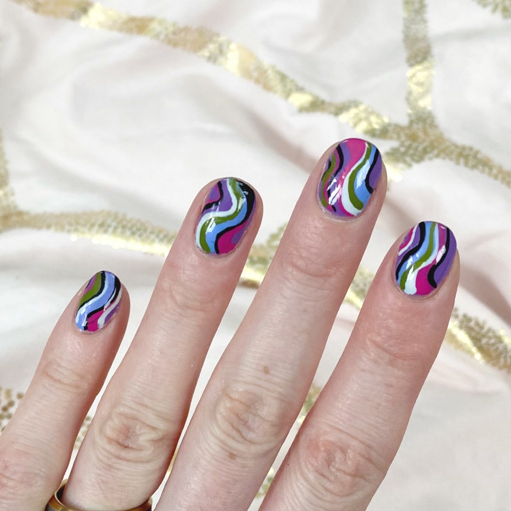 I’m calling these Pucci-esque–not to be confused with Color Club Pucci-licious–& they’re giving me mid-2000s vibes. Specifically: Emilio Pucci’s Spring 2005 collection. I wanted something absolutely bright & colourful, that just screamed Spring, & this combination delivered.