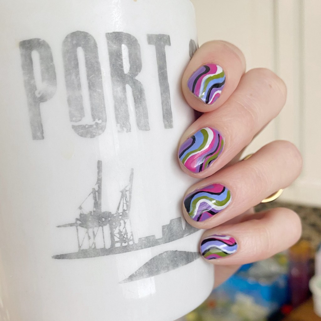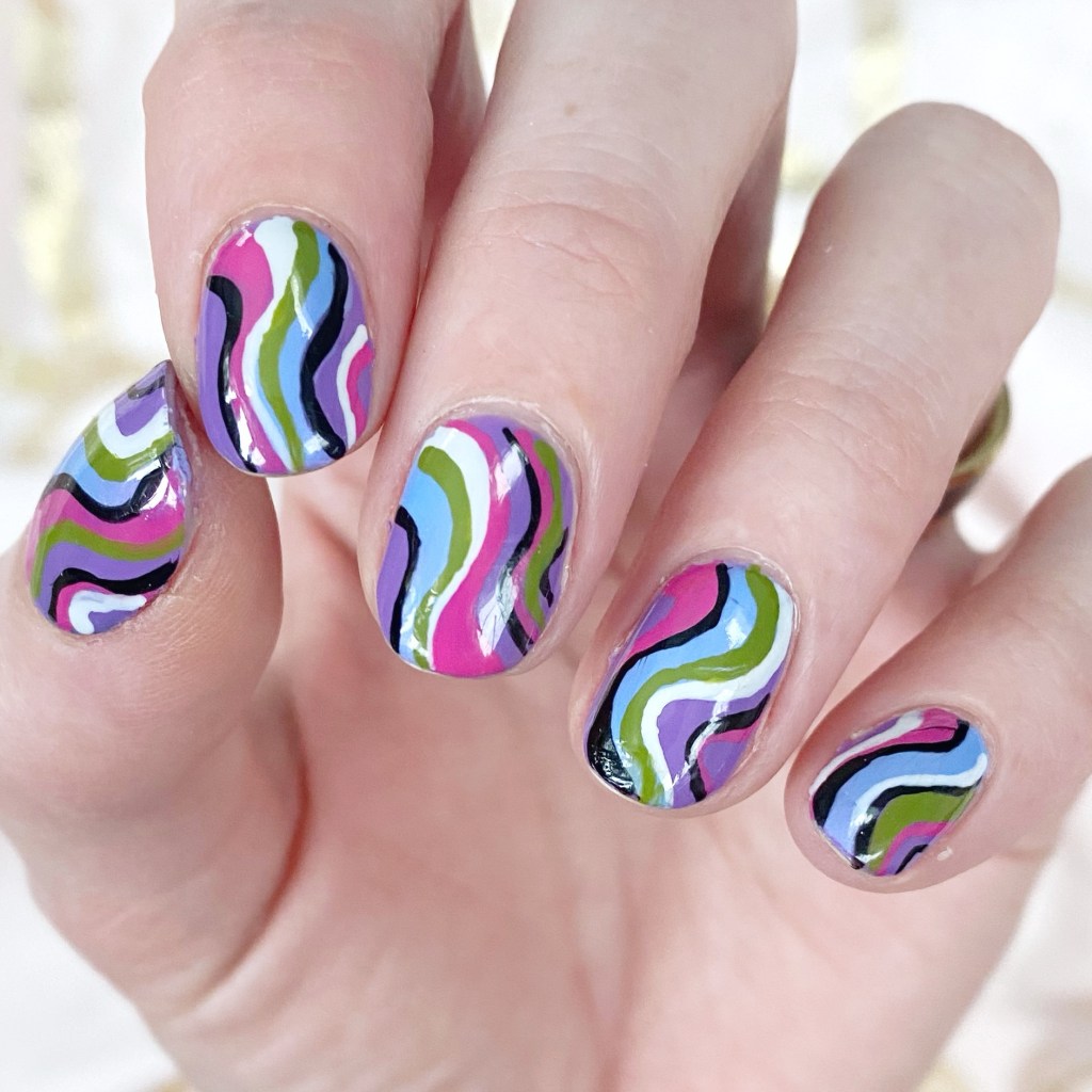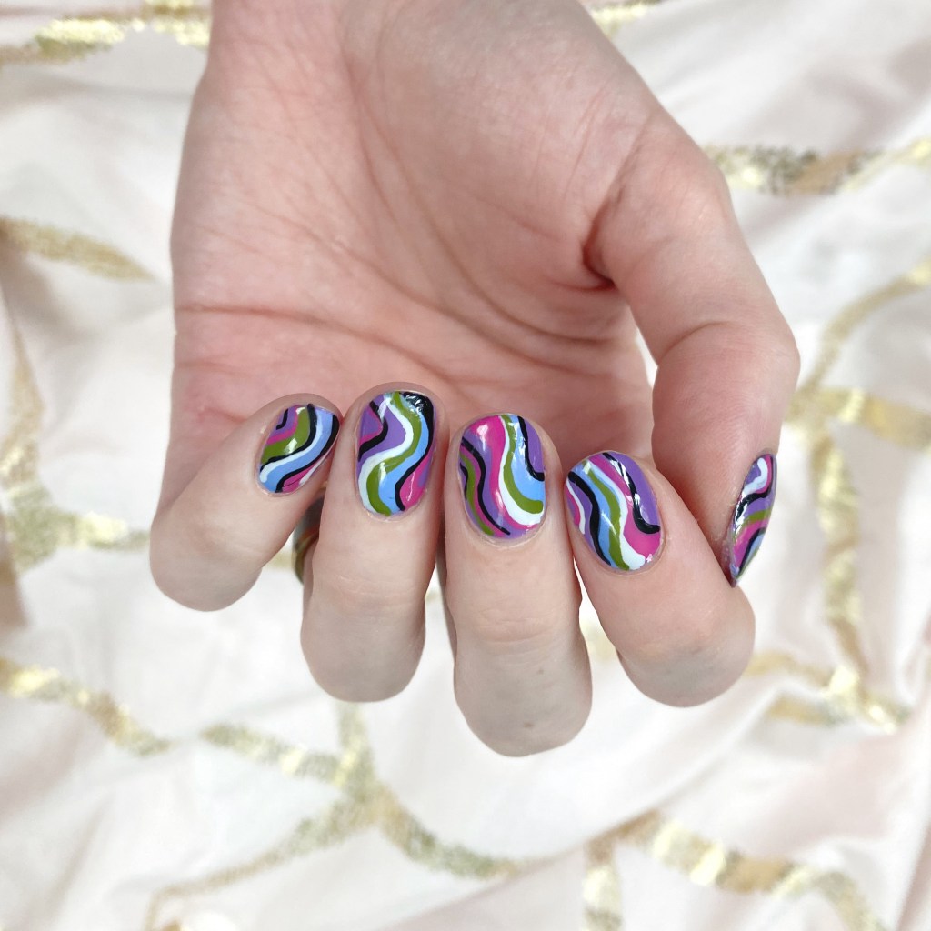 I’m calling these Pucci-esque–not to be confused with Color Club Pucci-licious–& they’re giving me mid-2000s vibes. Specifically: Emilio Pucci’s Spring 2005 collection. I wanted something absolutely bright & colourful, that just screamed Spring, & this combination delivered.