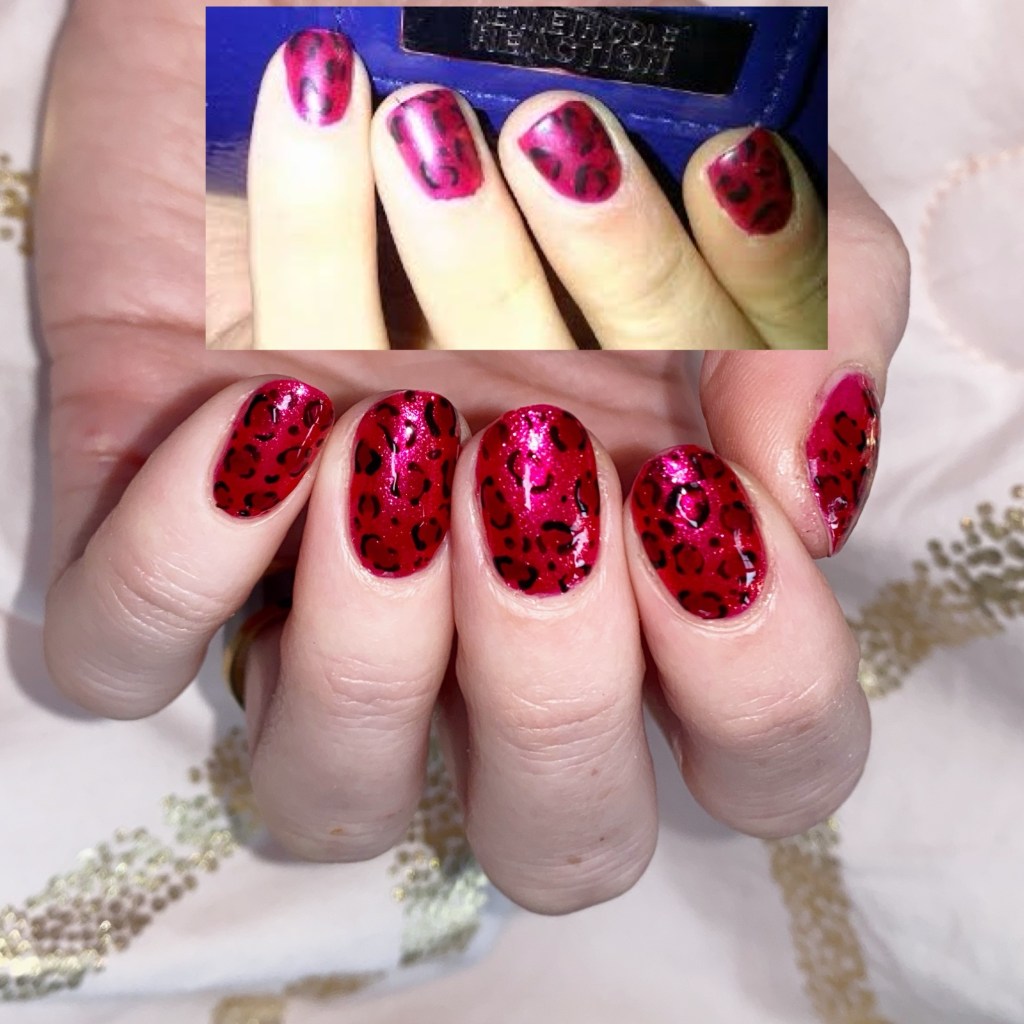 & obviously, since today is the anniversary of my very first blog post, I had to do a recreation of my very first design — a red on red leopard print. Base is Scarlett & my spots were done using Nicole by OPI Basking in Gloria (from the Modern Family collection).