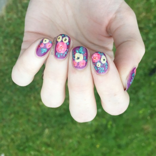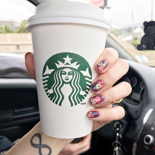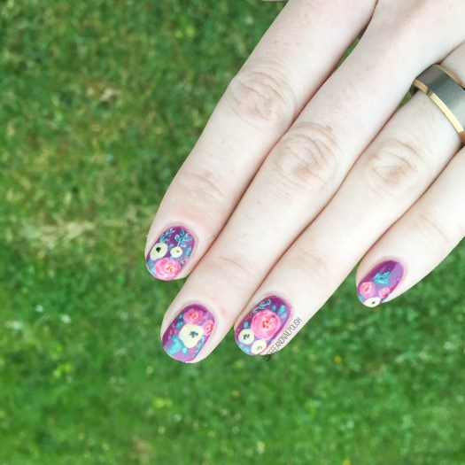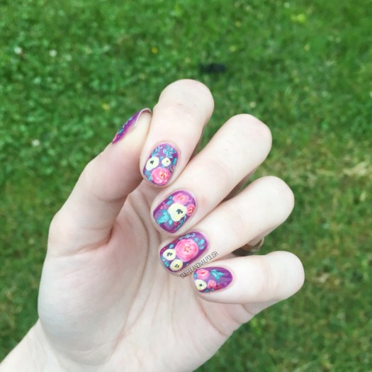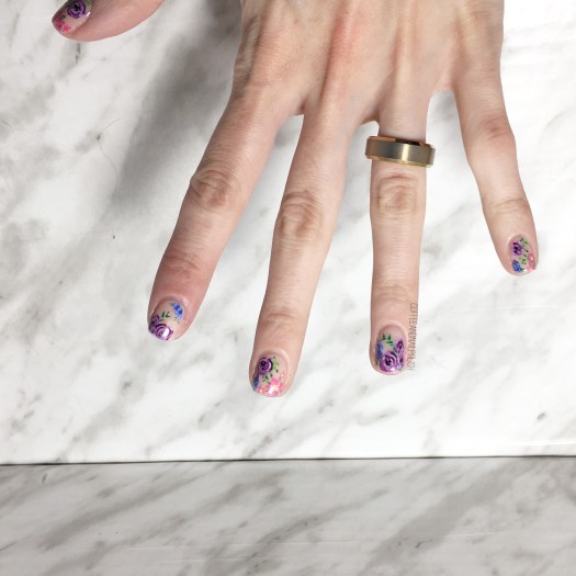 Can you never have too many floral manicures in your life? Personally, I don’t think so. We all know how much I adore flowers–from clothes, to shoes, to cellphone cases to my nails, I can never have enough! Recently I found a Rifle Paper Co. phone case at Winners on payday, so I decided to attempt to recreate said pattern on my nails.