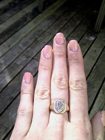 For my first NOTD from the group, I went with a combination of the Del Sol polish I picked up, and the Essence Metal Glam gold topper.