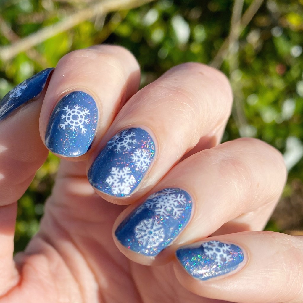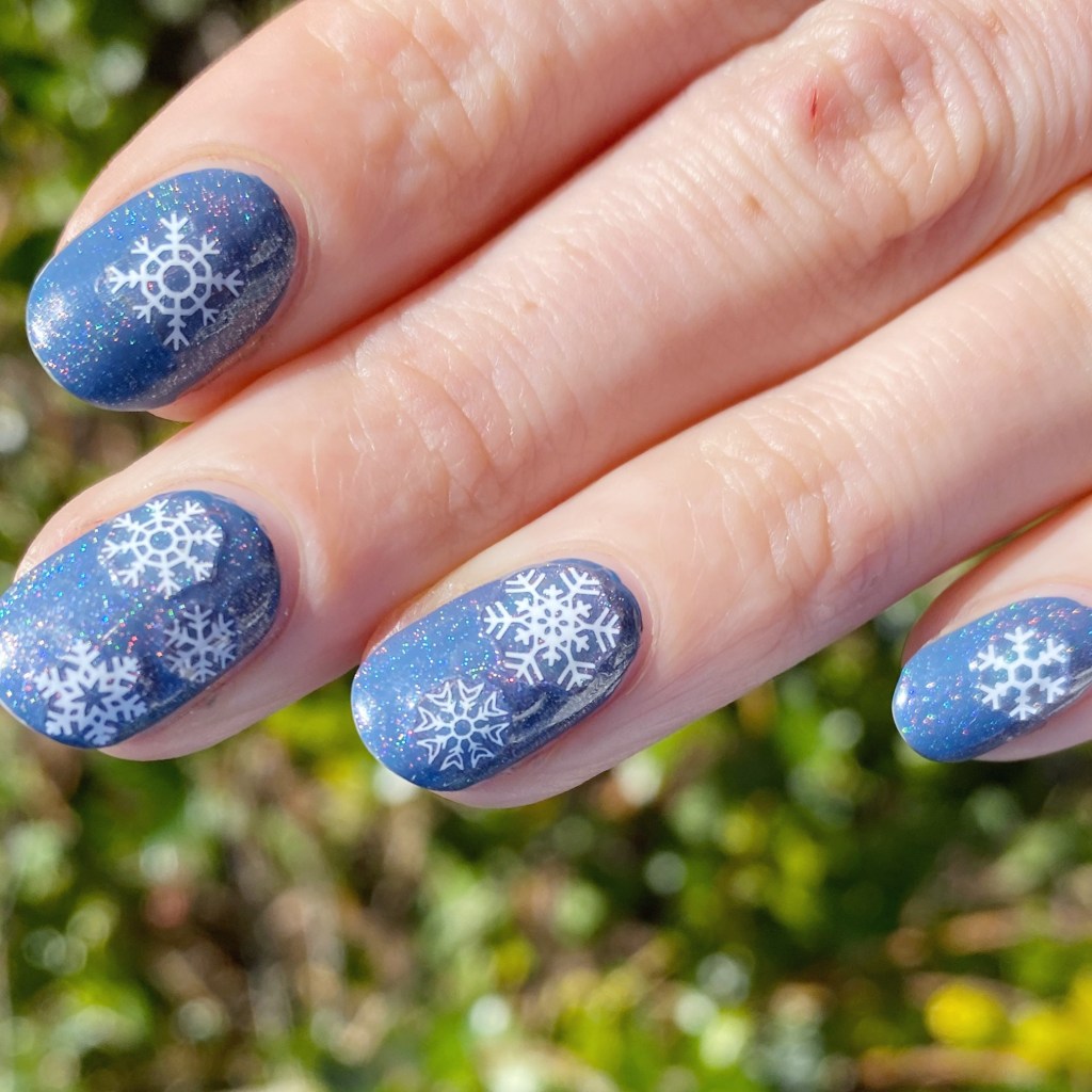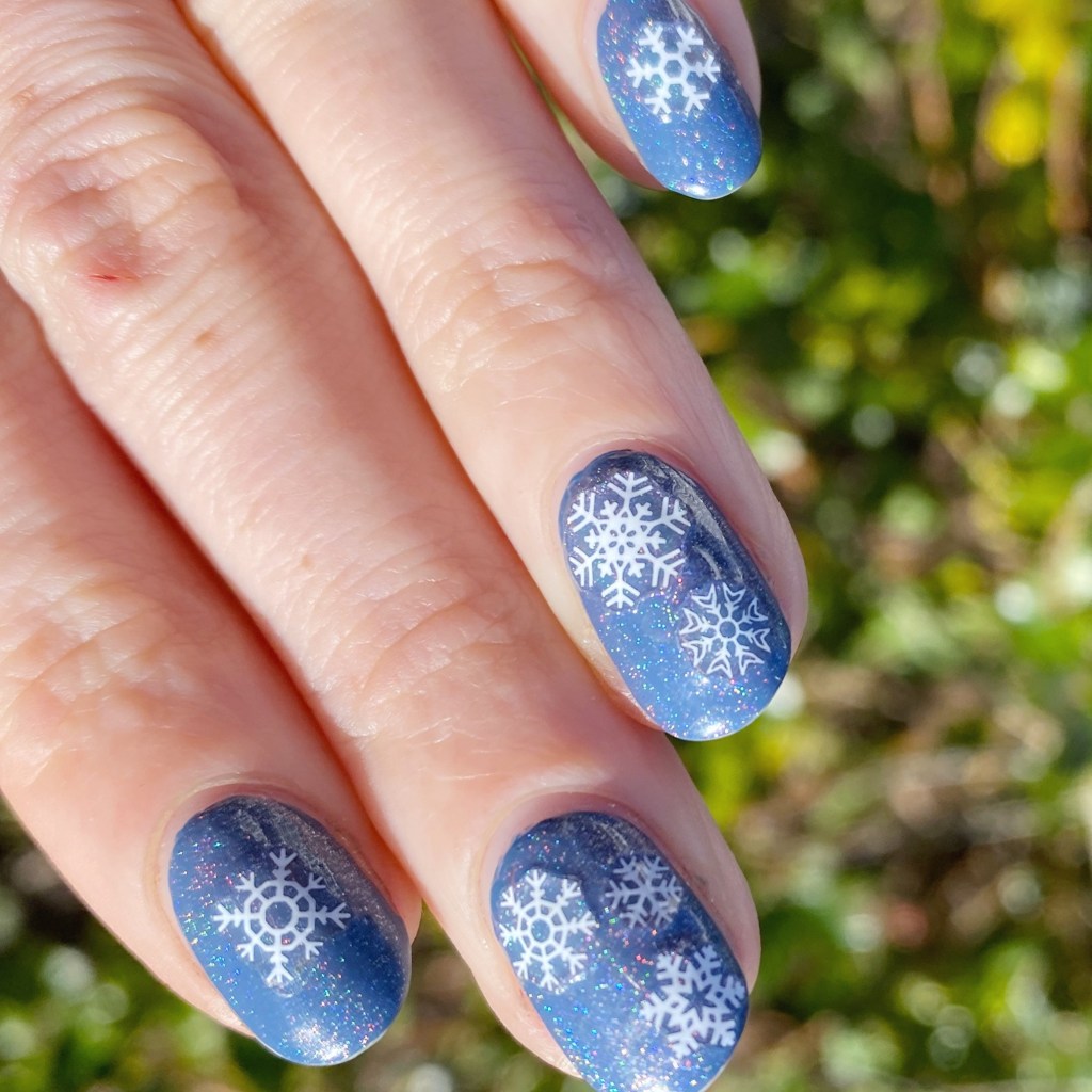 Listen, I don’t think I’m ready for any significant snow just yet, but these snow holo nails are perfect! They have just the right hint of sparkle paired with the snowflake pattern stamped over top. I’m actually over the moon with how these look.