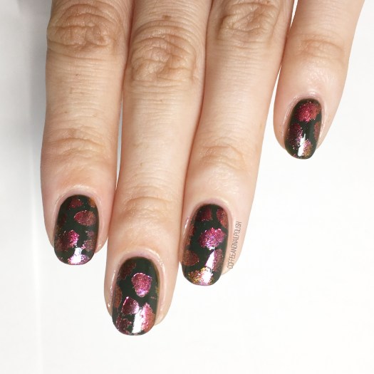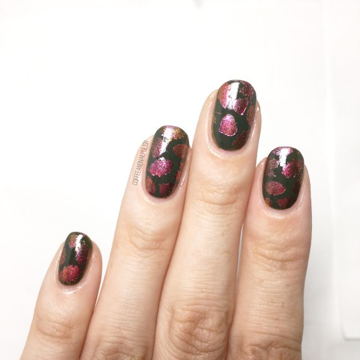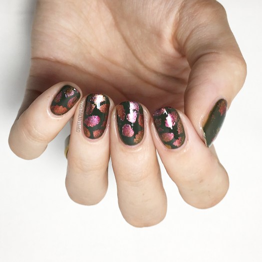 Passionfruit Pink is a dusty dark blush shade that is infused with the most vivid gold shimmer. For my swatch, I had perfect opacity in 2 coats. As soon as I painted Passionfruit Pink on my nails, I knew this was going to be a go to shade for Fall. The pink on its own is a lovely, girlie shade but with the gold shimmer it becomes so much more. & unlike a lot of other nail polishes, this shimmer does not hide on the nail. As you can see from my pictures, it’s in your face & just as present on the nail as it is in the bottle! You can easily understand how these are inspired by Shop Wrenn’s beautiful stone jewelry.