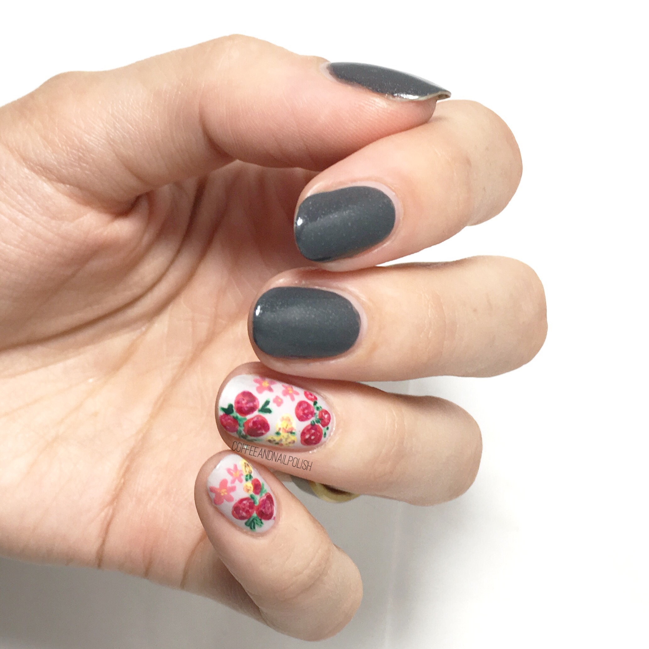 Floral nails always take a few (dozen) polishes to get right, but I never seem to mind because of how beautiful they look. My flowers still aren’t as perfect as I dream about them being, but I still always have fun painting them on. Hopefully if I keep practicing, some day I can get my floral up there with the likes of @polishpeach & @just1nail! They’re serious floral nail goals–I wish I knew the secrets to painting such realistic & beautiful designs!