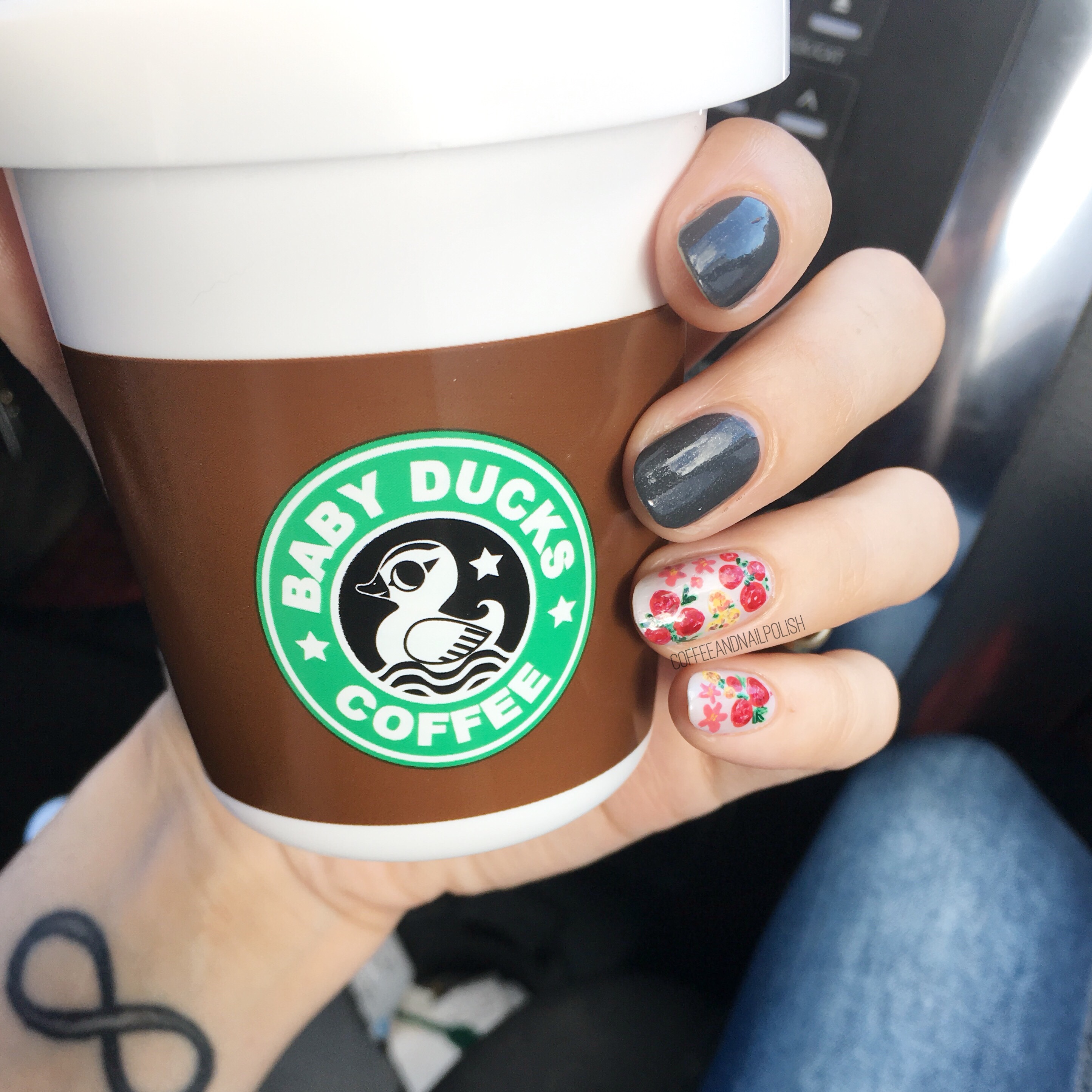 & just for fun, here is a shot of my nails & my sons sippy cup that is inspired by a Starbucks cup! When I was pregnant my Mom & my Aunt both bought me one so now the whole family can match with our coffee cups. Haha I think it’s too cute & I figured why not borrow it for a “coffee shot” since I had forgotten to take one with my own coffee.