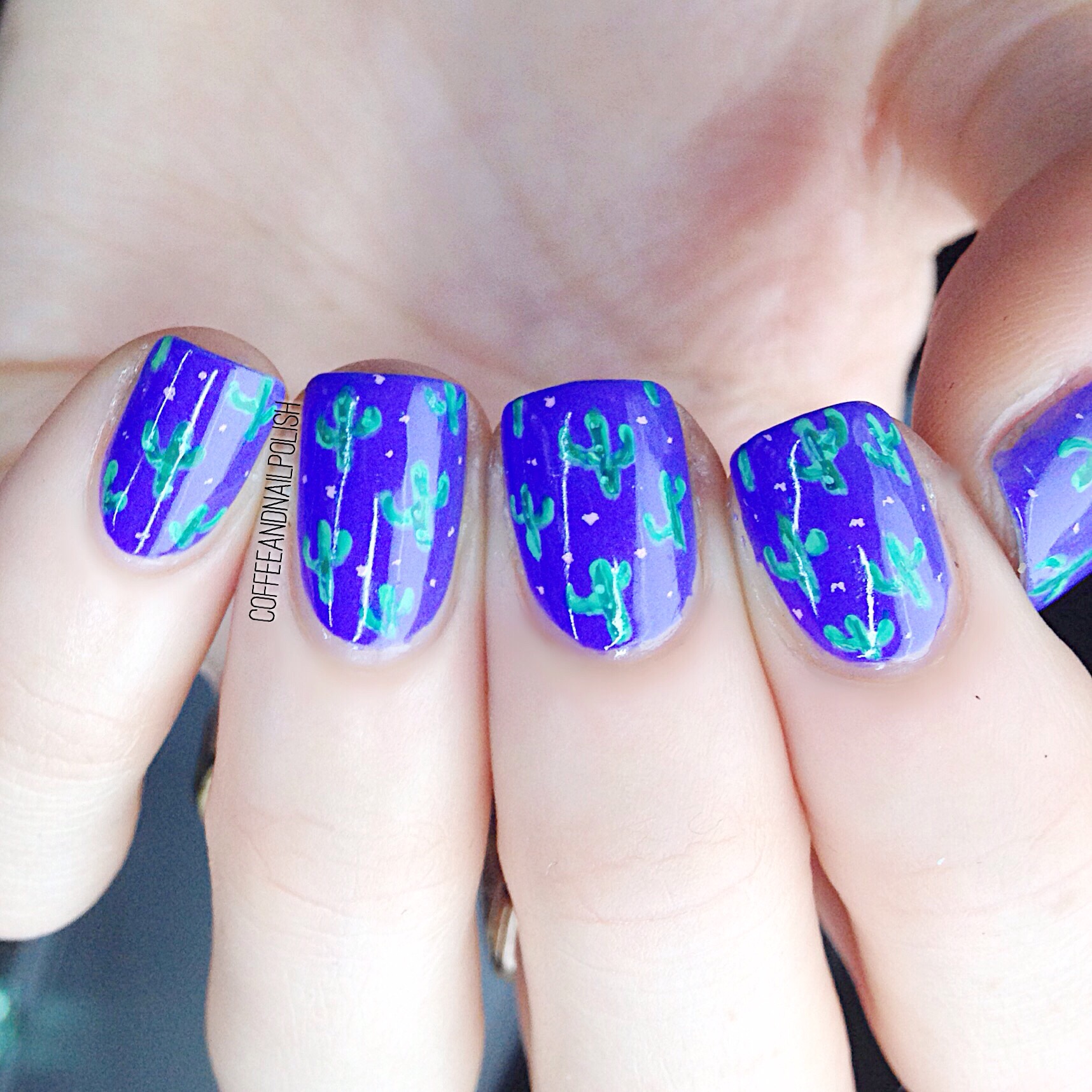 Today I have some cute cactus pattern nails to share with you! I’ve been seeing a lot of adorable cactus manicures popping up in my Instagram feed lately including adorable manicures by @ChelseaQueen, @NailAllie, & @theBaseCoat. So with so much amazing inspiration around me, I had to try and create my own cactus design! It took two tries (my first attempt was, ahem, not the prettiest) but I think that my final design turned out quite cute!