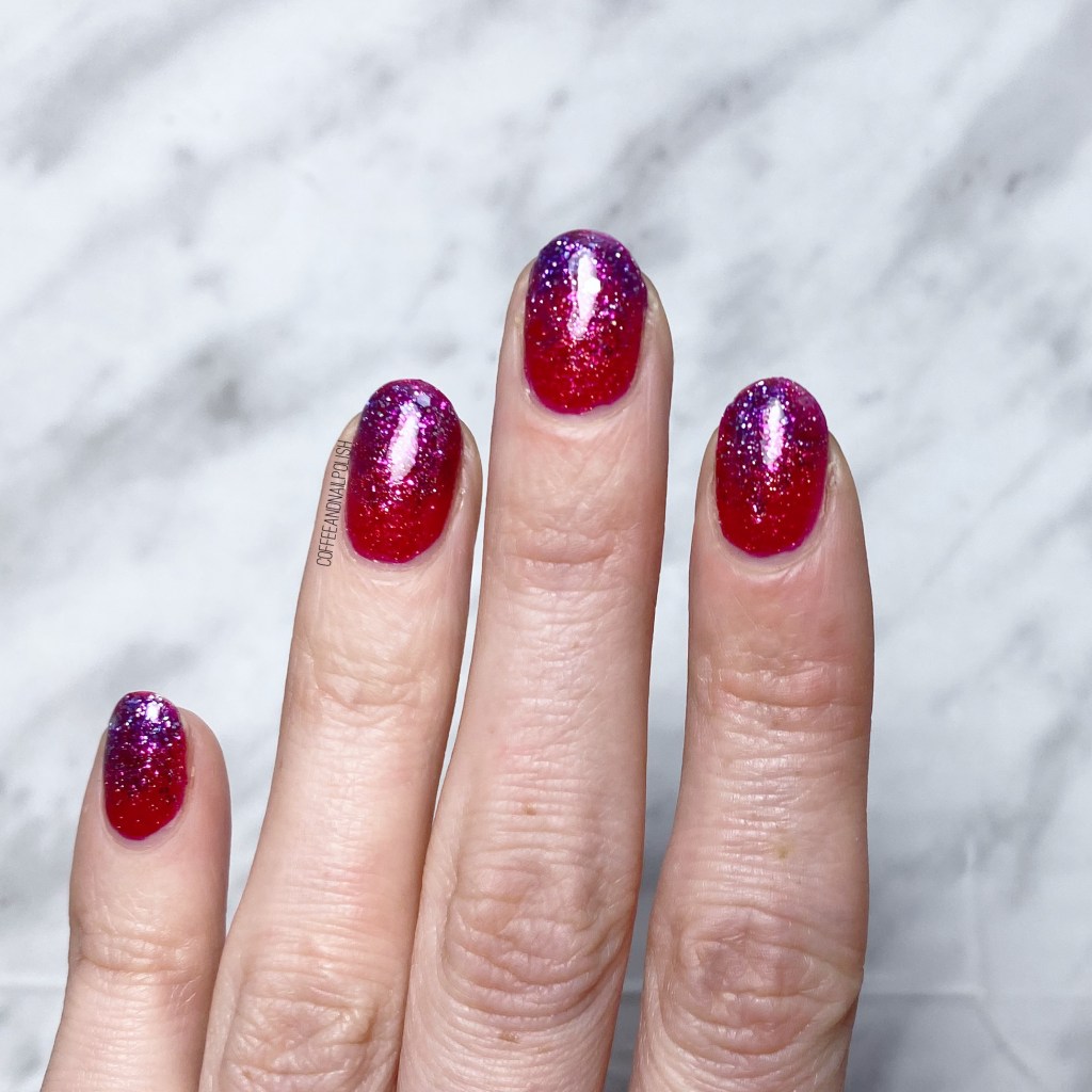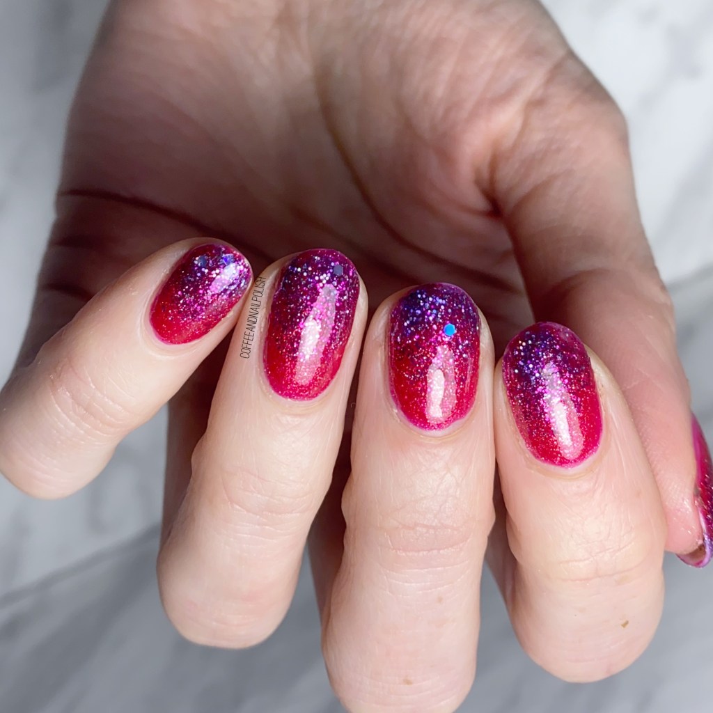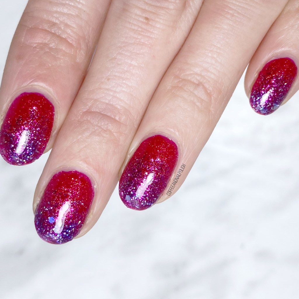 Check out those layers of glitter! It’s been a long time since my last gradient like this with lots of glittery shades, but I’m obsessed with how it turned out.