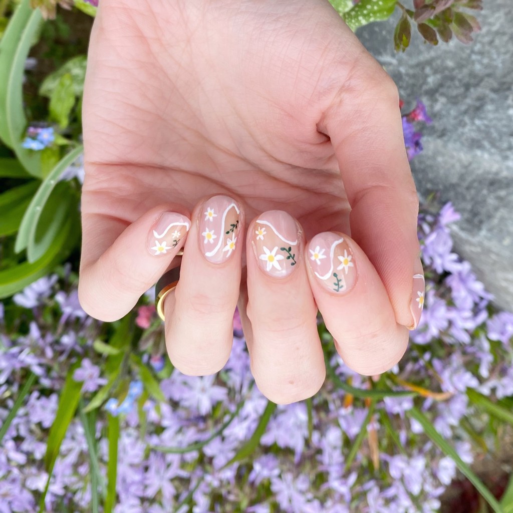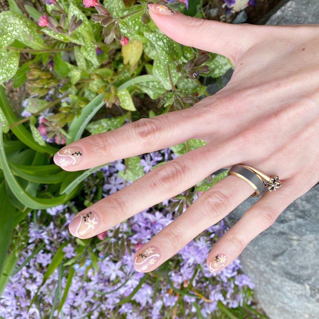 I’m kind of obsessed with how this turned out. I decided to go minimal on my floral — I usually use multiple polishes for each flower & my leaves — & I love how it looks. It’s clean & simple, which is exactly the look I was craving. A nice palate cleanser for the nail. I also really like that Princess Charming is quite neutral, so it doesn’t stand out too much on the nail & keeps that naked look I was going for.