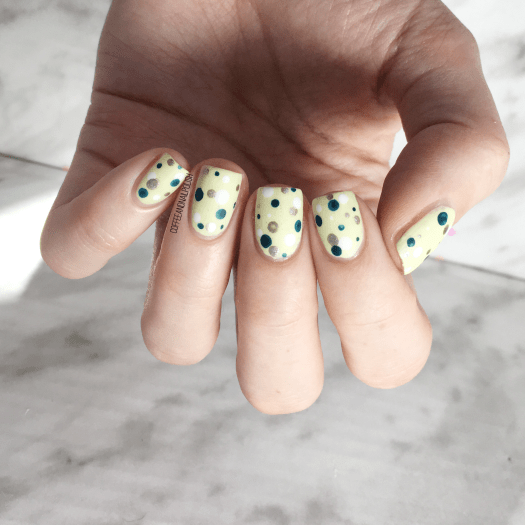 For the first time in a long time, I wasn’t feeling the St. Patrick’s Day nails this year, but decided at the last minute (yesterday) to do something, anything. & what is more fun & festive than a green themed dotticure!