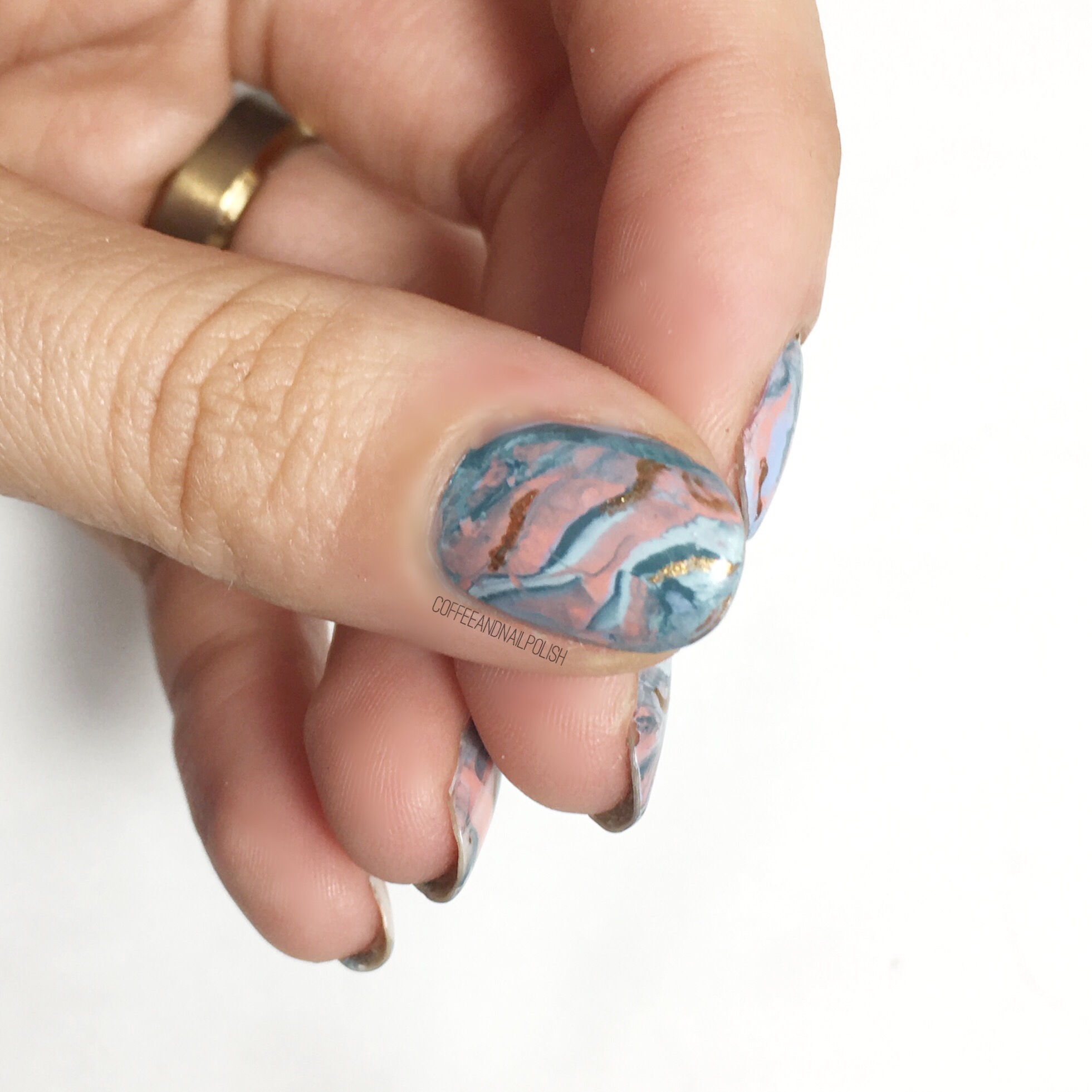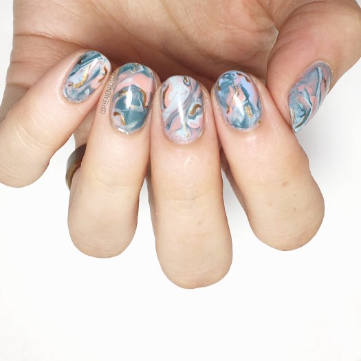You definitely want to move quickly & carefully when applying it to your nails. When pressing down, don’t move your nail because it will smudge the design which will ruin the geode look of the design.