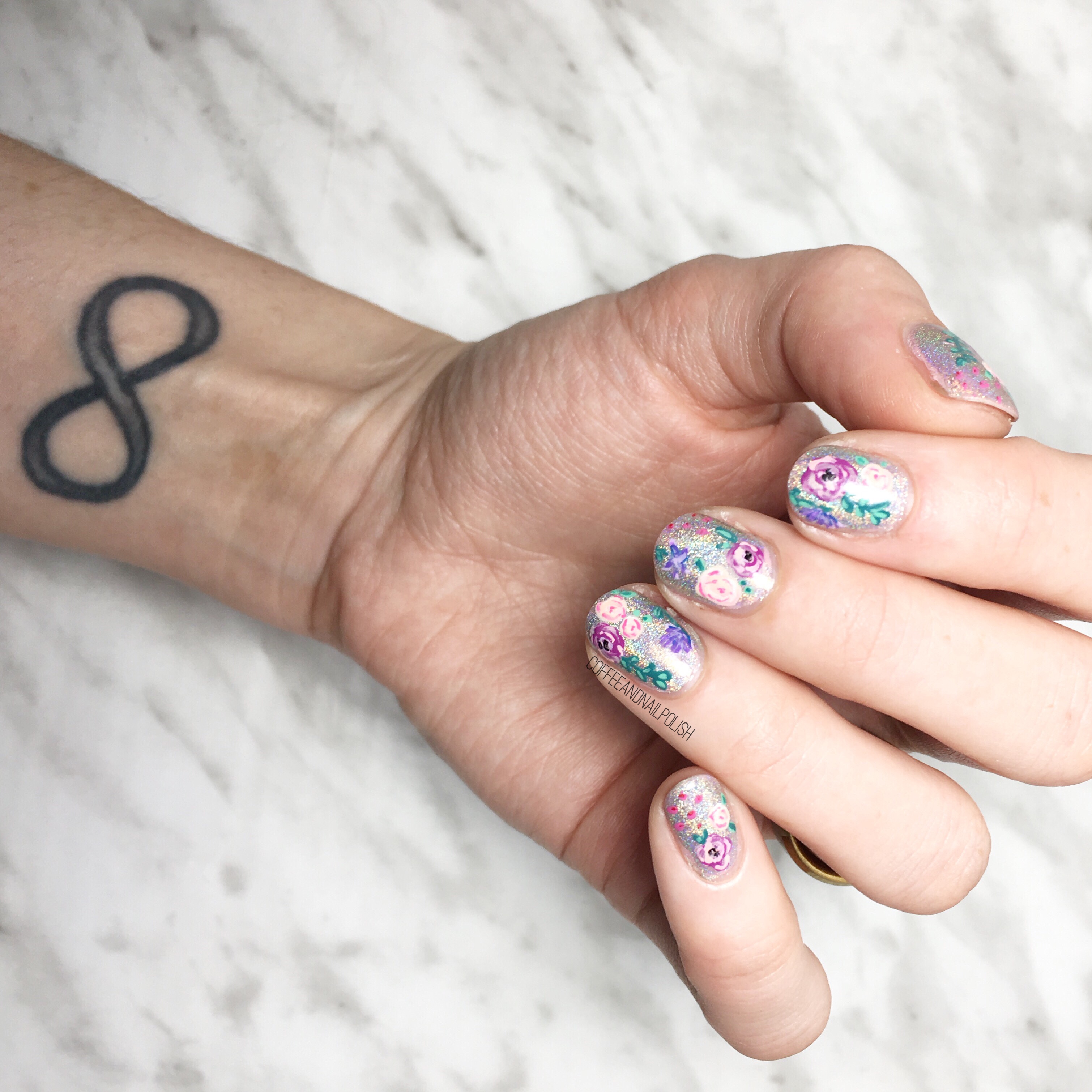 How pretty is this combination? I’m so glad I went with these pink foil flakies rather than gold. Obviously gold would have looked beautiful as well, but there is just something extra special about the pink on pink. I can’t believe this is my first time using it!