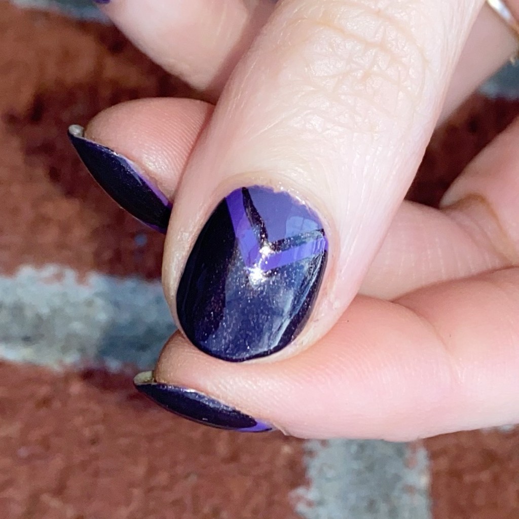 Look at the close up of that sparkle — isn’t that just so pretty? Also the pinky purple blue glitter just looks so beautiful paired with the dark base of Belle of the Ball.