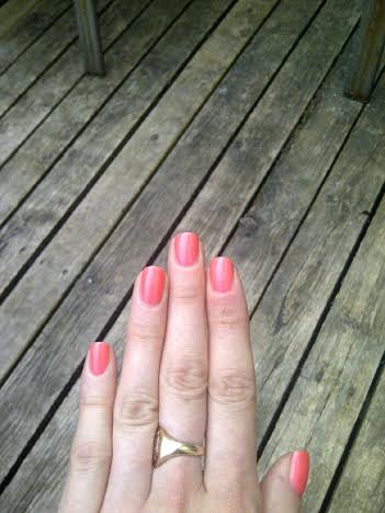 I can’t not say enough how much I absolutely LOVE this polish. The subtle shimmer is beautiful, and the color is so perfect for Summer. The only issue I had was a tiny chip on my pinky finger this morning, but that could have been brought on by the house cleaning I did before starting my day. Regardless, I couldn’t stop staring at my nails all day. They even perfectly matched my dress that I wore on my coffee date with my best friend today. (Couldn’t have planned that better if I had tried!). Even he noticed how pretty and bright my nails were. =)