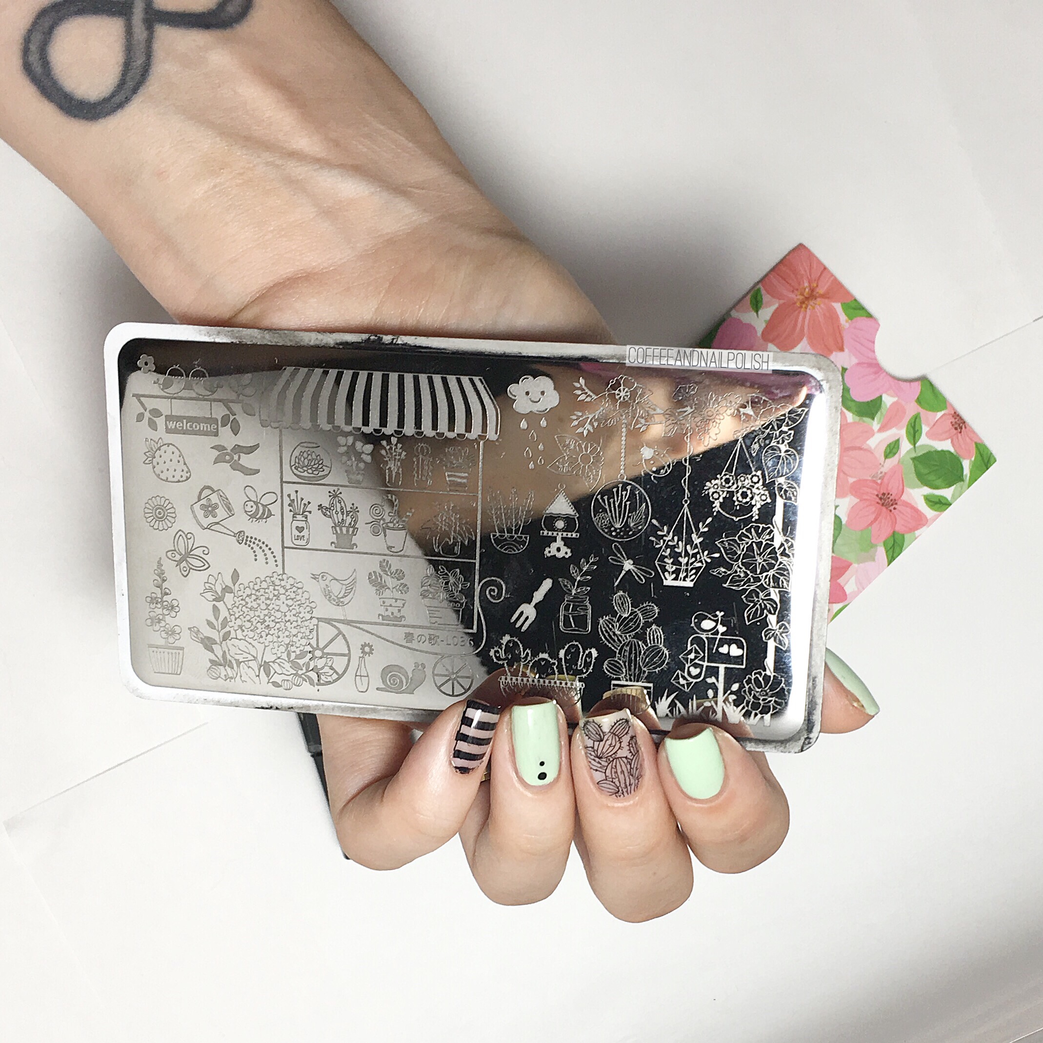 Good morning! I was recently sent some awesome items from Born Pretty Store for review & I can’t wait to show off what I received. Today I’m reviewing this Potted Plant Harunouta Stamping plate L036 (item #38420) featuring my current garden obsession–cacti! 🌵