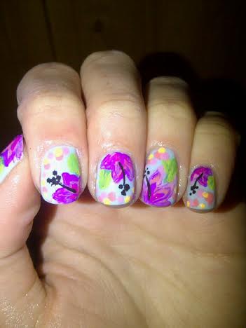 So what do you think of these tropical floral nails? I think the flower on my ring finger turned out best.