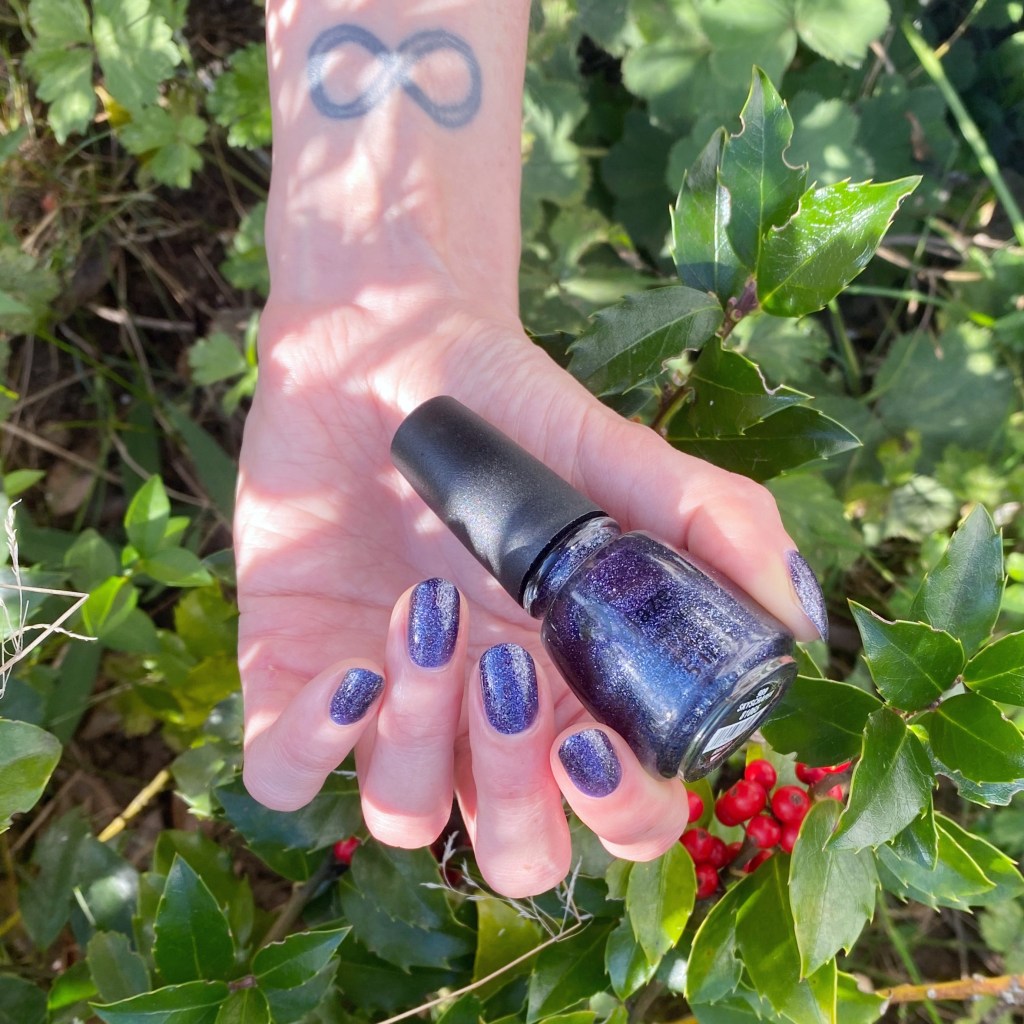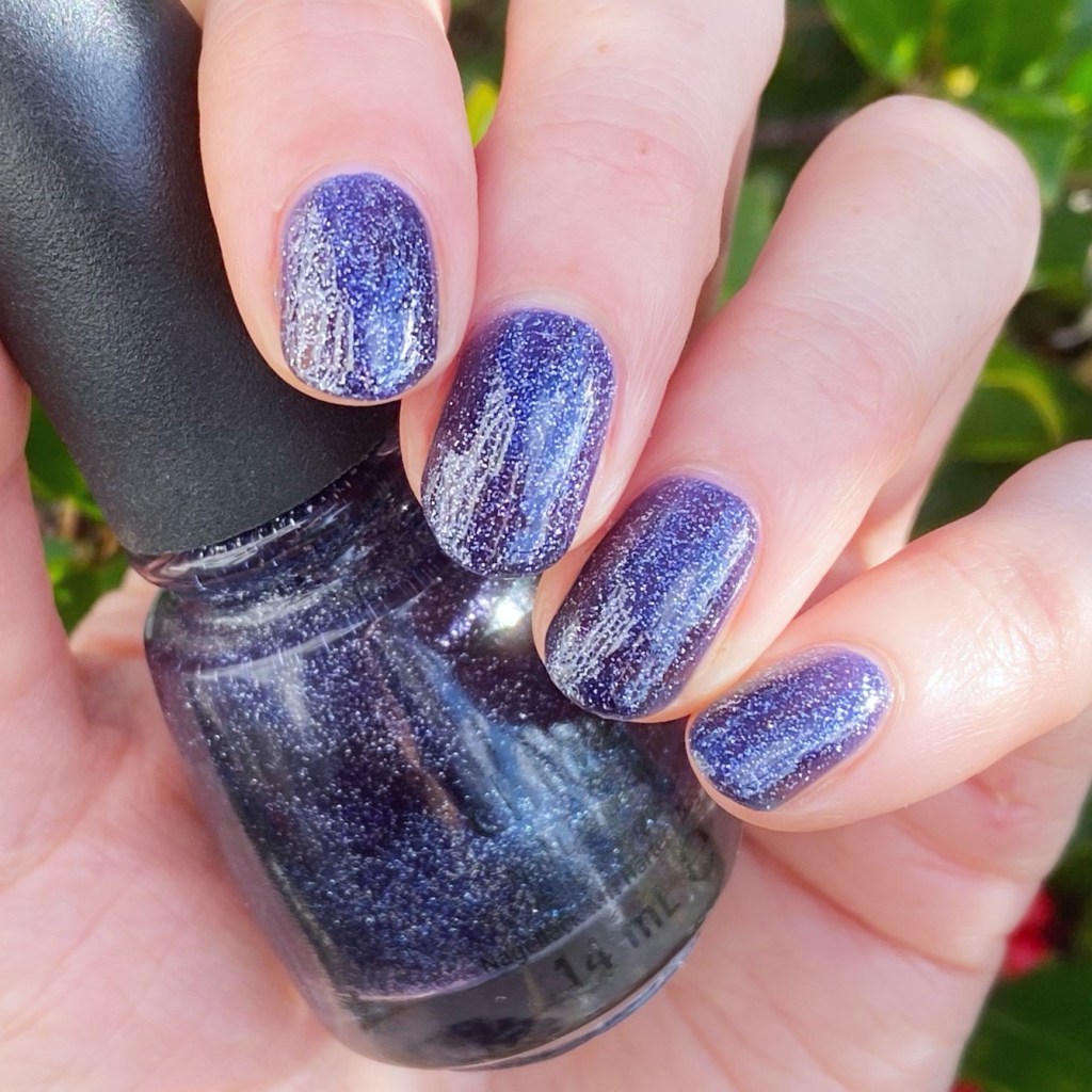 Once upon a time, purple used to be my signature colour (after red, of course) & as a result I spent many years buying every purple, or purple leaning, polish I could get my hands on. Skyscraper is a gorgeous dark blue/indigo jelly base packed full of silver & blue micro glitters. Some of the pictures of swatches of this shade I’ve seen seem more blue than my bottle, but maybe that’s the result of it being 10+ years old (I can’t remember exactly when I bought it, but I did post about it here.)