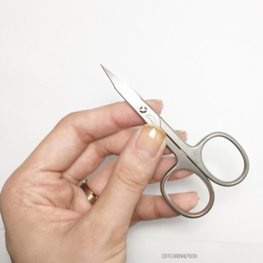 Next step of my routine is to clip off any loose skin/potential hang nails. I don’t snip my actual cuticles, but I do make sure to clip off any spots that are potential problem areas. These cuticle scissors are great because they’re sharp & precise. They’re also the perfect scissors for applying nail decals, which I’ll have a post showing soon!