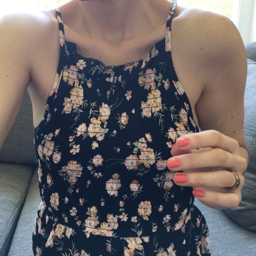I’m really, really loving this pattern. It’s been a little while since I rocked floral, so I’m was excited to break it out again. Especially since it’s already starting a feel a little Fall like in the morning, & I feel the call of cosy sweaters & jewel toned polishes already!