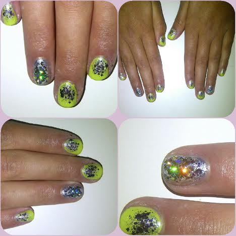 Tis the season for Prom. I’m long past my prom years, but my old neighbour I used to babysit is attending her grade 9 grad this year, which is pretty much a mini prom for those graduating to high school. It’s also a very big deal to them, almost as much as prom is to high school seniors. So when she asked me to do her nails for the big dance, I was more than honored. Her dress was lime green with sparkles, so I went with that theme.