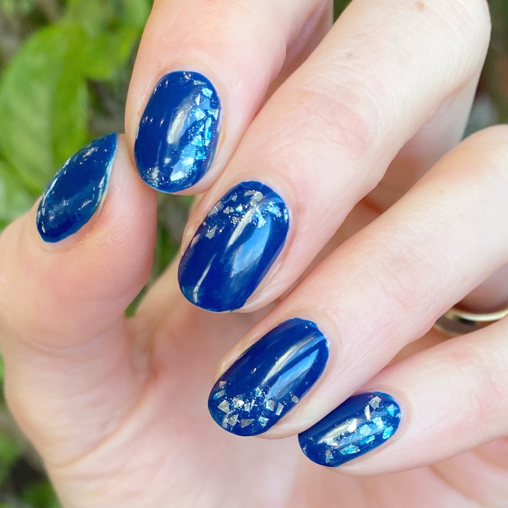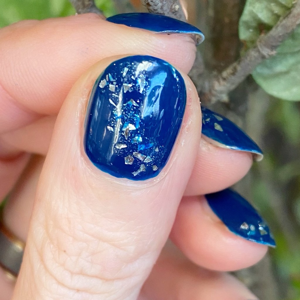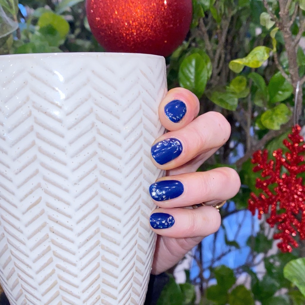 So I totally forgot I had this fun Morgan Taylor silver shatter glitter I was gifted all the way back in 2017 — so naturally I needed to pull it out for some kind of icy glitter placement look. I decided to use another shade from the same collection (Little Miss Nutcracker) as the base for this look. & this beautiful cobalt blue was calling me!