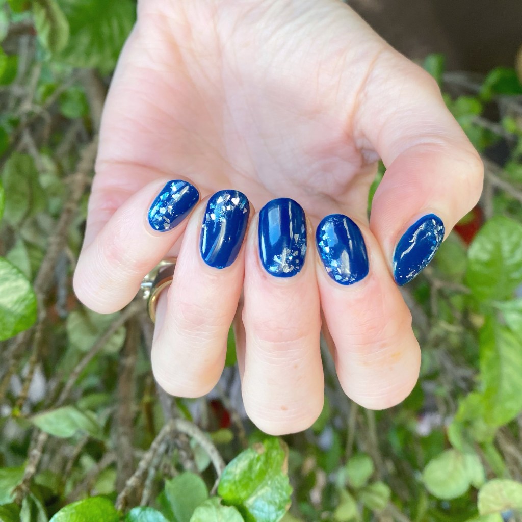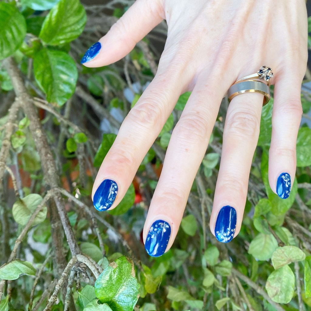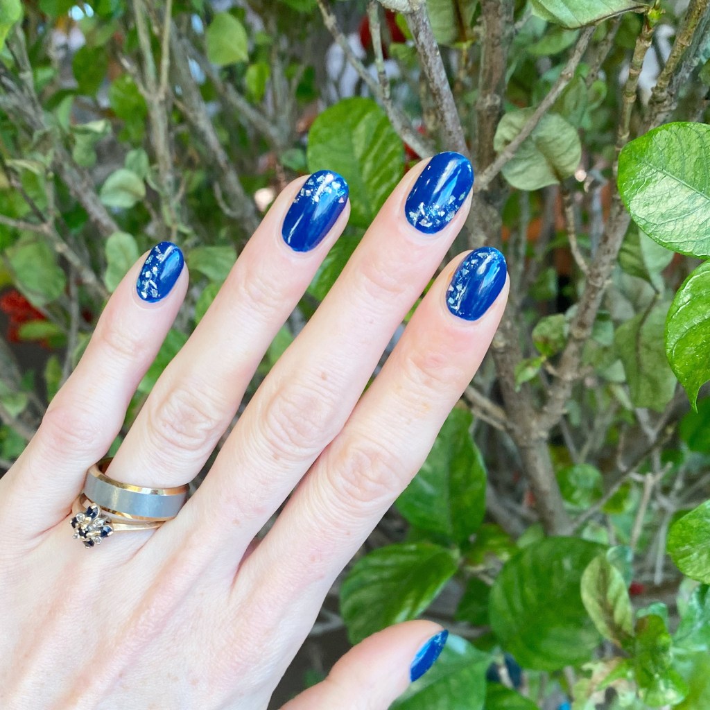 So I totally forgot I had this fun Morgan Taylor silver shatter glitter I was gifted all the way back in 2017 — so naturally I needed to pull it out for some kind of icy glitter placement look. I decided to use another shade from the same collection (Little Miss Nutcracker) as the base for this look. & this beautiful cobalt blue was calling me!
