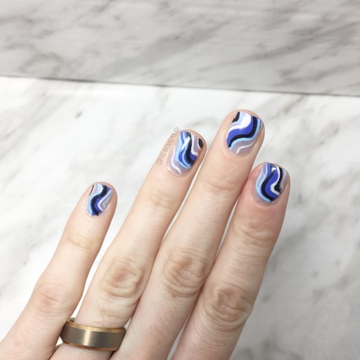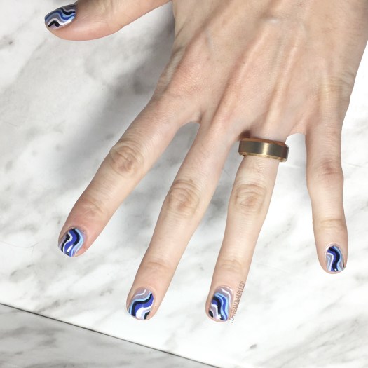 I can’t remember the last time I did an abstract stripe design, but it most definitely has been a while. (I went back through my Instagram feed, & this post from May 2018 seems to be my last time doing this technique, with a similar colour scheme. I guess I really love creating this style using shades of blue.