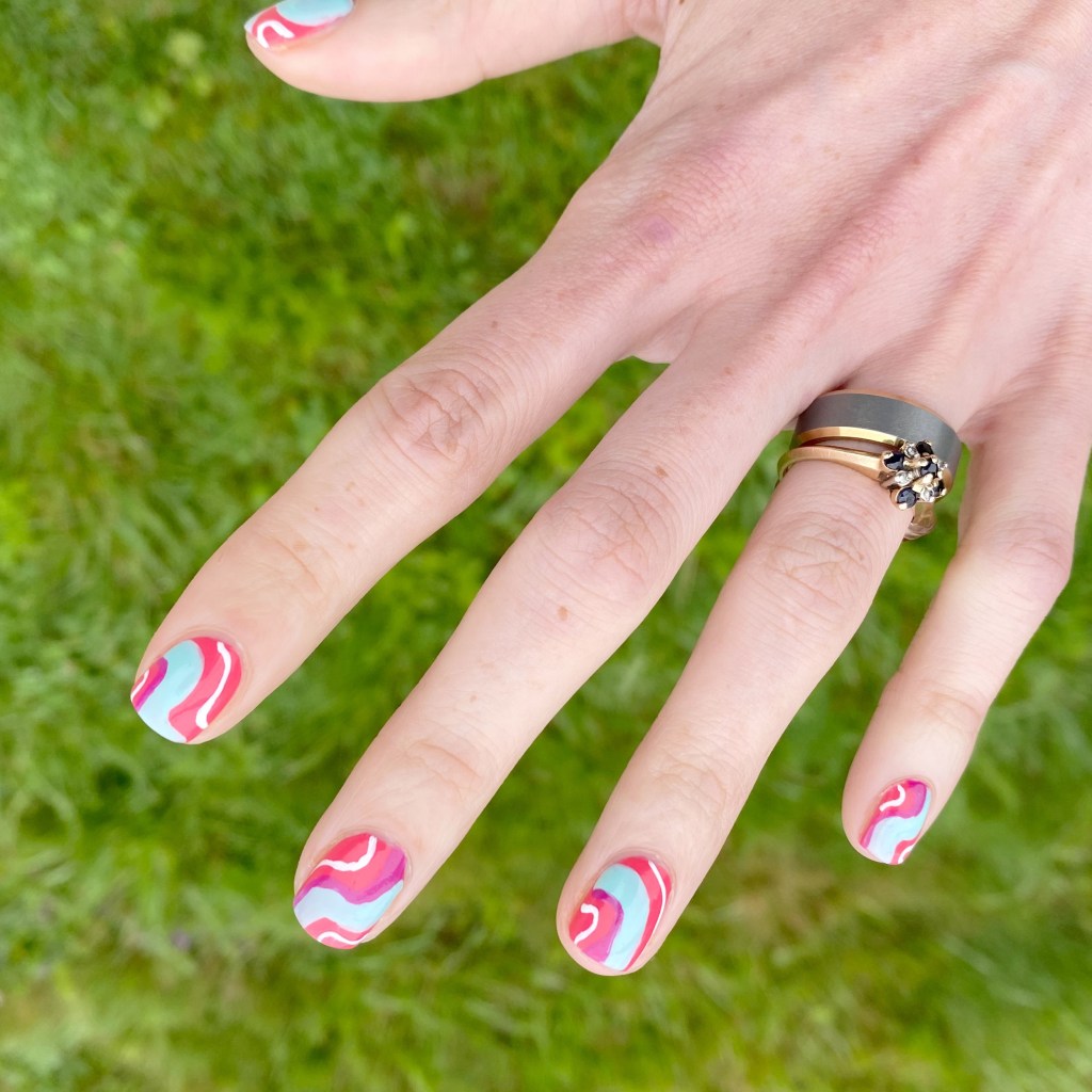 What do you think about this Autumn inspired abstract stripes. I think the grey base gives that frosty feeling, so it works for a November design. I’m still feeling a bit of lack of inspiration lately, being between holiday seasons, but I feel like I’ll be back into my groove in no time!