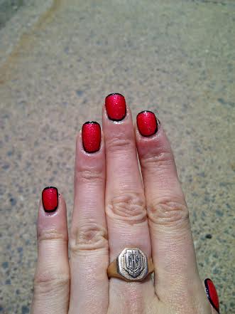 Aren’t they pretty? Oh man, I couldn’t stop looking at how they turned out. Unfortunately, it appears as though I’m not having a very good-luck nail week. When I got to work I was busying organizing some stuff, and accidentally hit my hand off a table, hard. And the end result almost made me cry.
