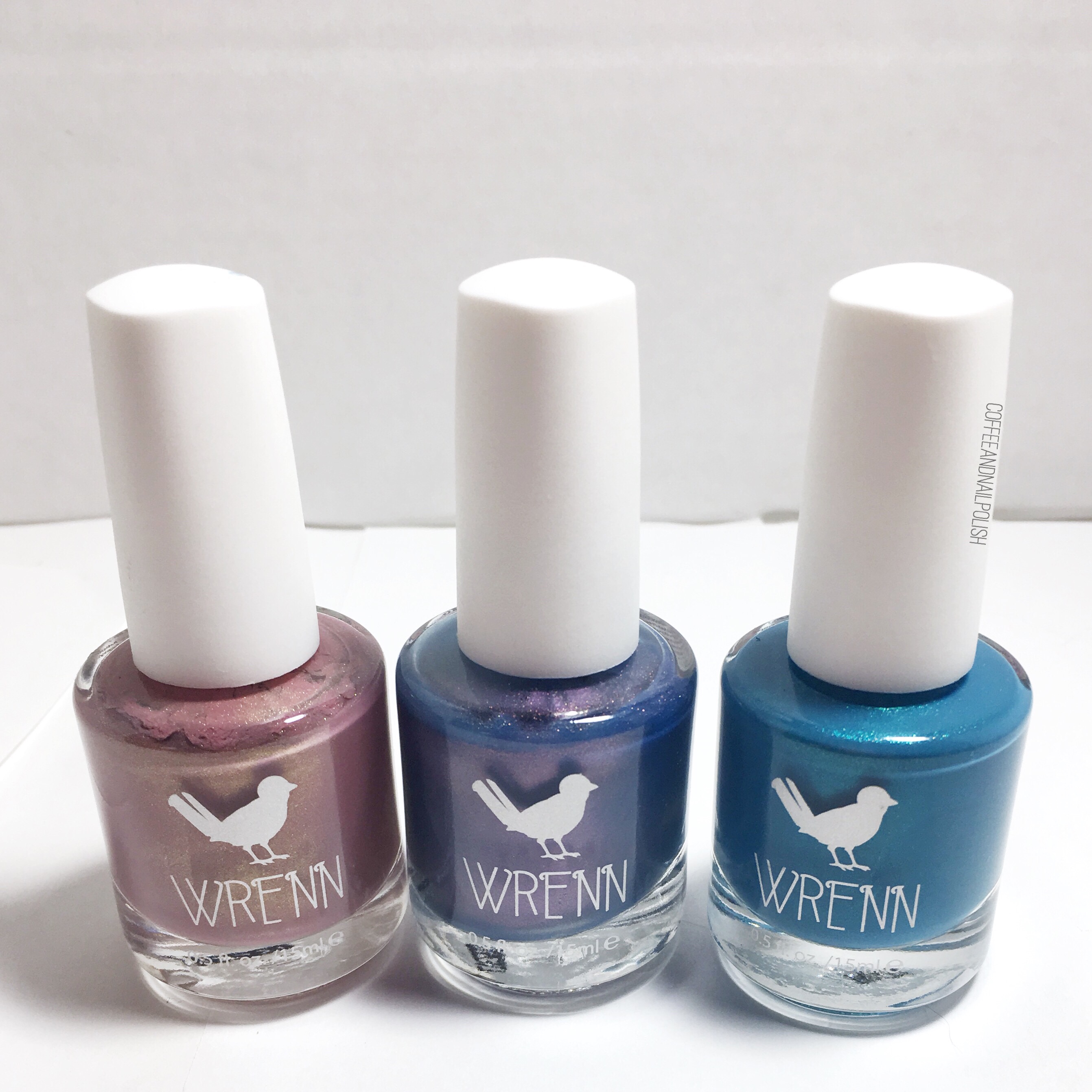 Wrenn Polish is a subset of Shop Wrenn which encompasses both these beautiful 5-free vegan & cruelty free nail polishes & their hand made Druzy stone jewelry which inspires it. I was lucky enough to receive three shades for review: Passionfruit Pink, Peri*twinkle* & A Pirates Life.