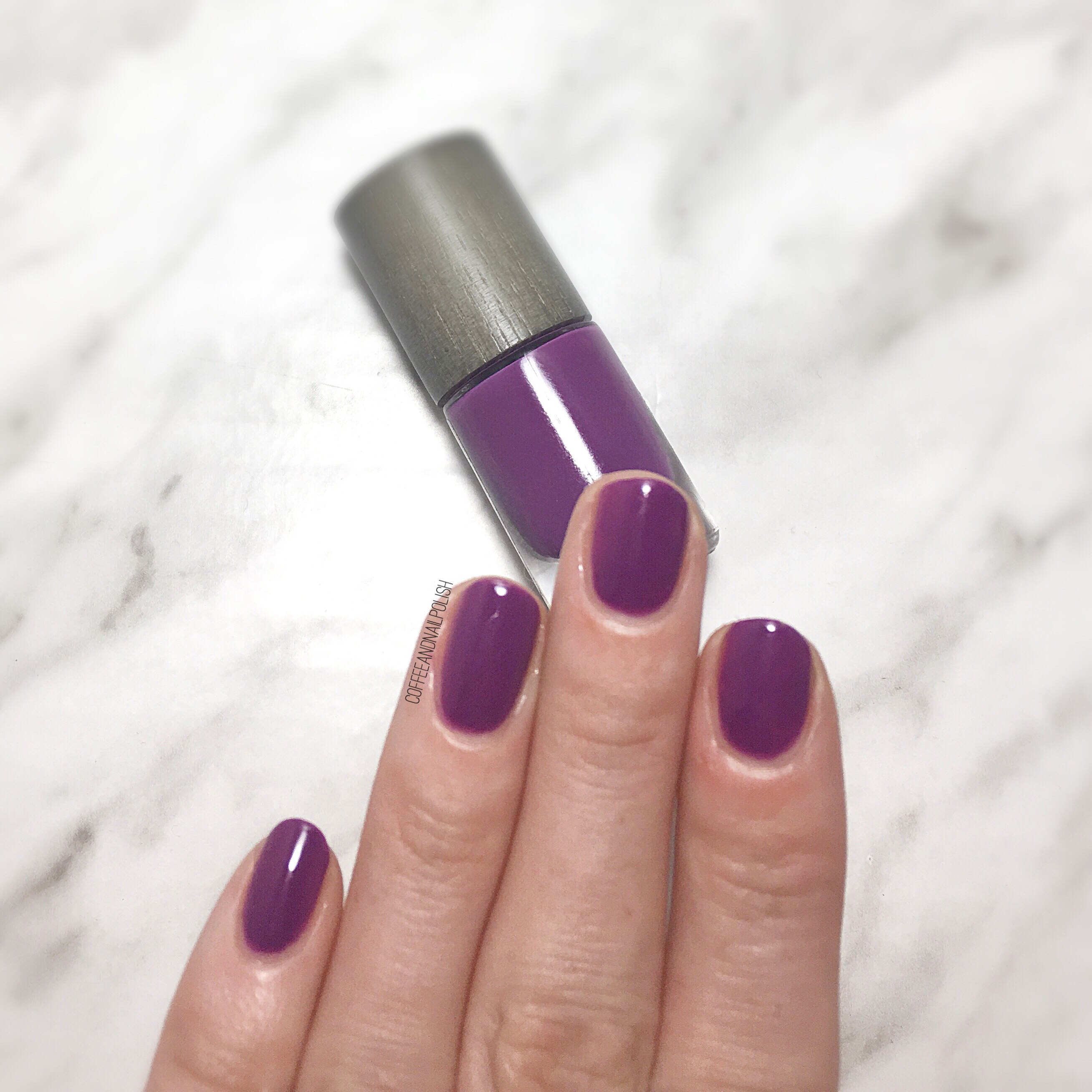 The smell while applying this polish was interesting — I suppose it is part of it being a “natural” brand, but it almost had a grape-like smell to it. I don’t know if that was psychosomatic from seeing the purple colour or actual but it definitely was more pleasant than your typical nail polish (not that I make a habit of going around sniffing every bottle of nail polish I put on my nails.)