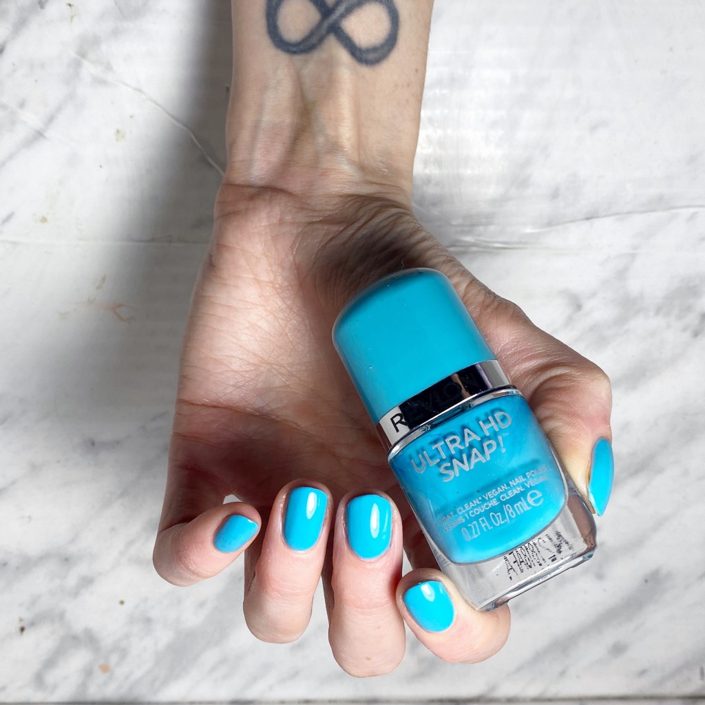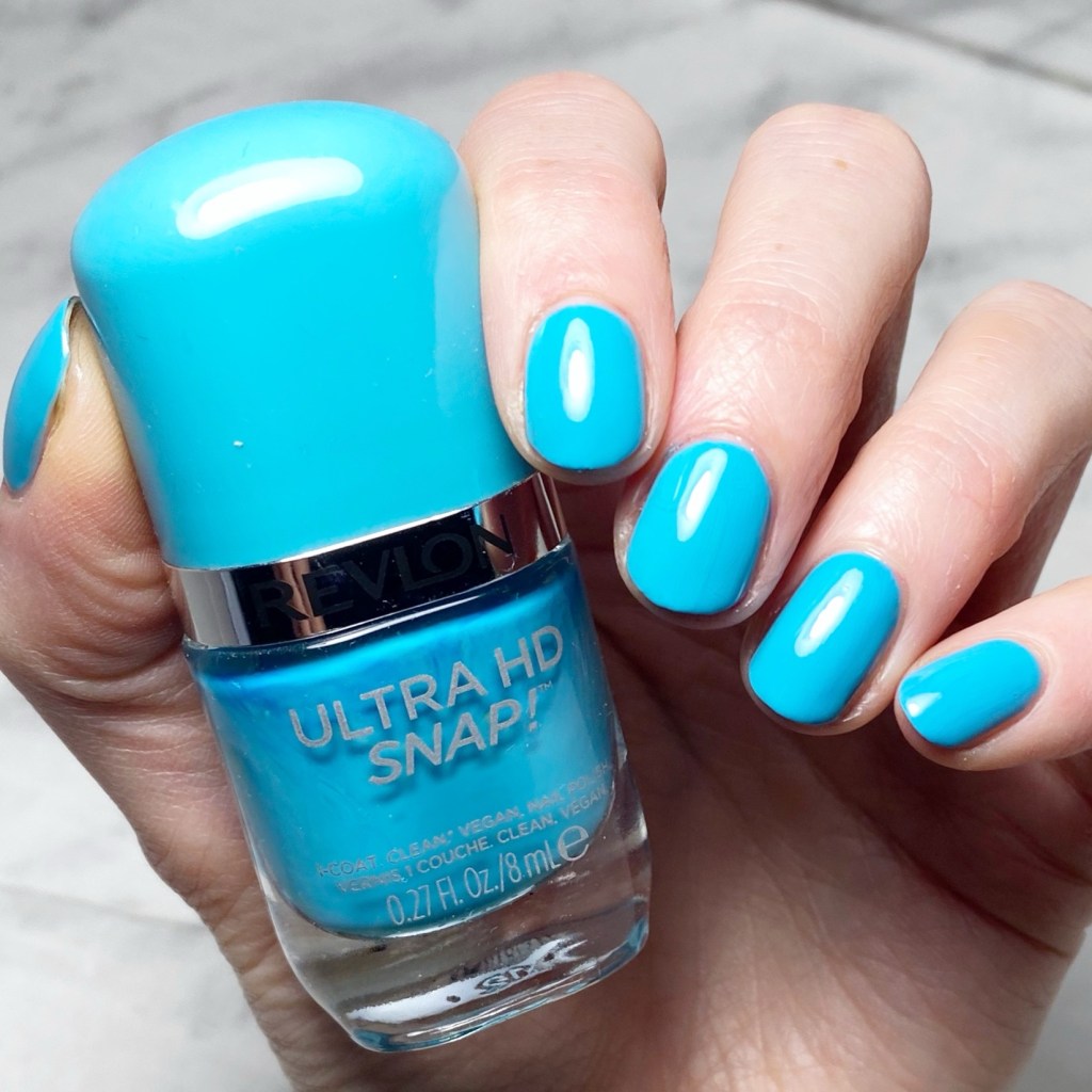 Described as a “Ultramarine” Blue on the Essie website, I feel like this blue is much more exciting on the nail than in the bottle. The formula is on the thinner side, so two coats was a must for opacity. The formula dries quickly, but an added coat of top coat gave it a more plush finish.