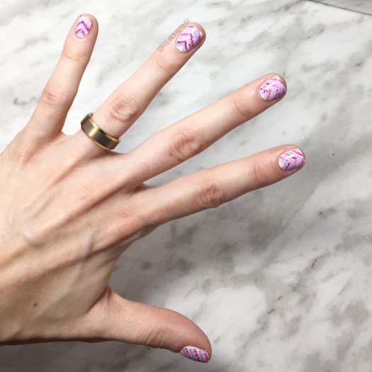 Of all my nails, I think my ring finger probably turned out the best, followed by my middle finger. Sadly, I was using a more than half empty bottle of top coat, so there were way too many bubbles happening… but I guess that helps add to the marble effect! & thankfully you can’t really see them from far away. It was just me they bothered immensely.